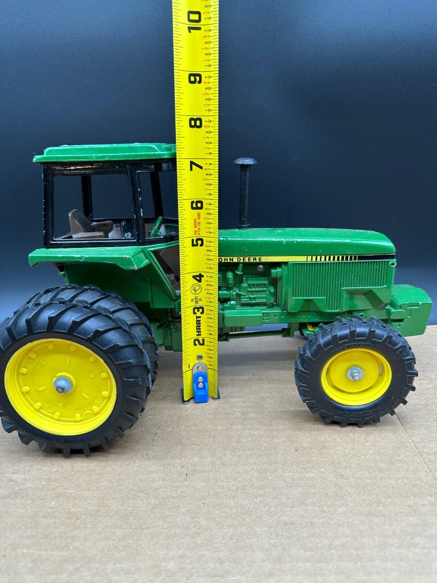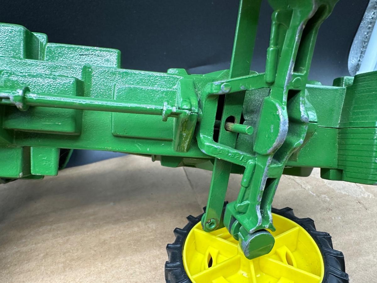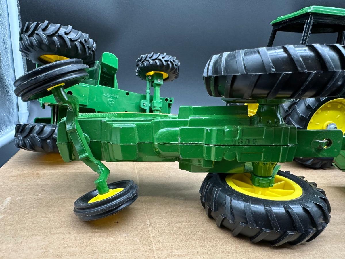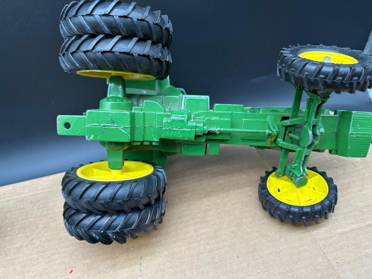 Condition ranges from good to play-worn with paint loss, scuffs, and wear consistent with age and use. Tires are present and roll; no boxes included. Great display pieces or additions to a farm toy or John Deere collection.