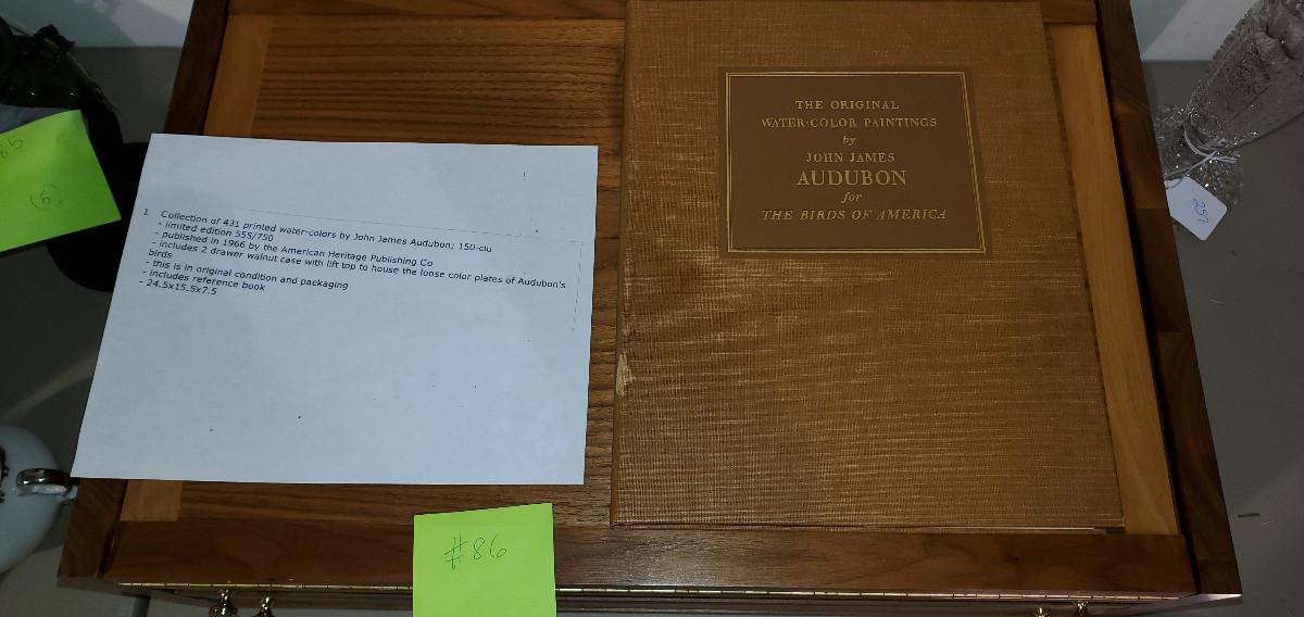 Vintage set of John James Audubon Printed Water Colors with Wooden Case and Book American Heritage Publishing company 1966(item #86)