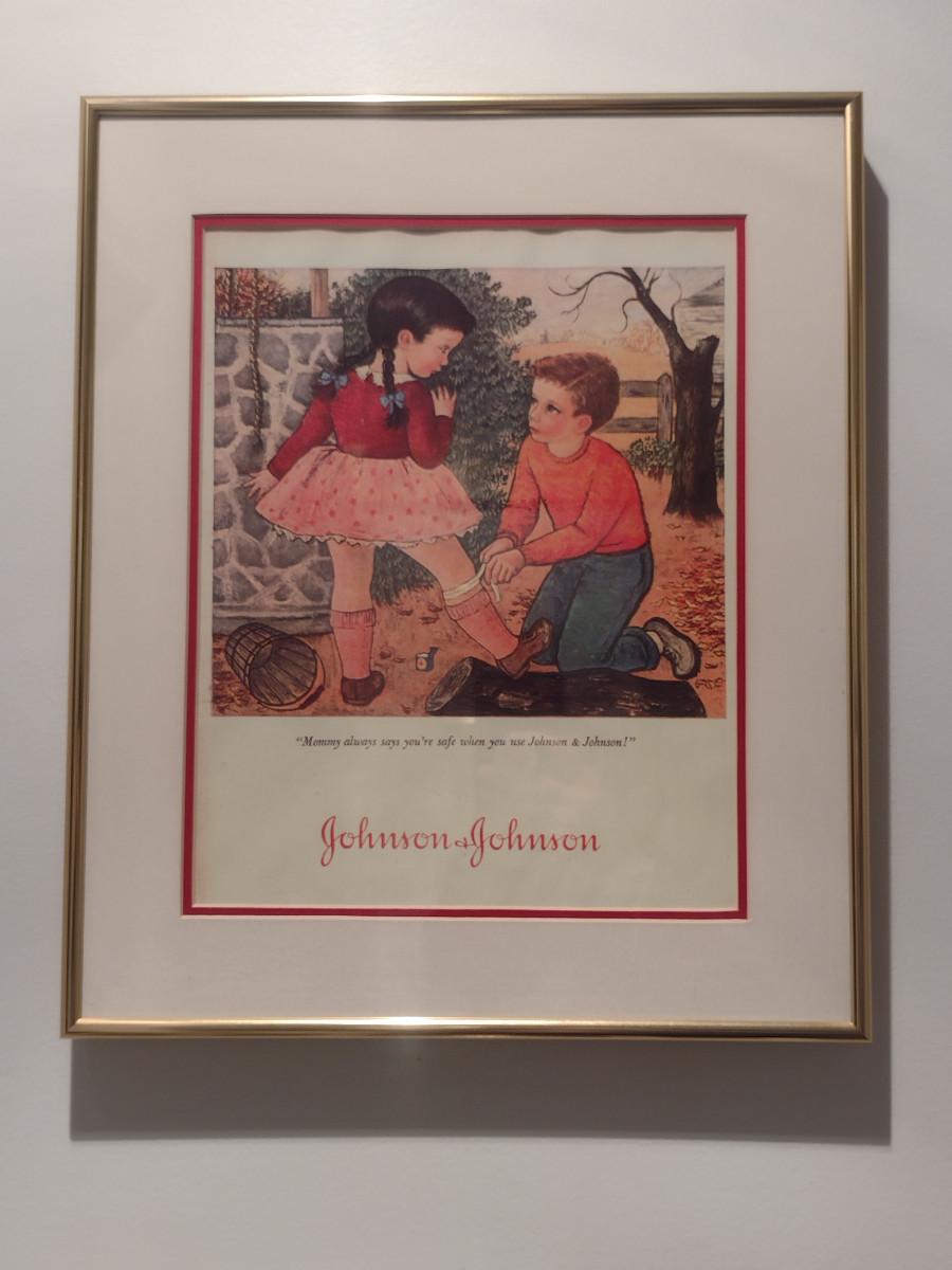 Vintage Johnson & Johnson Advertising Print Framed Behind Glass