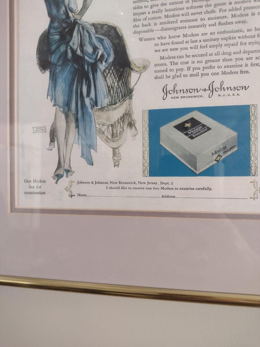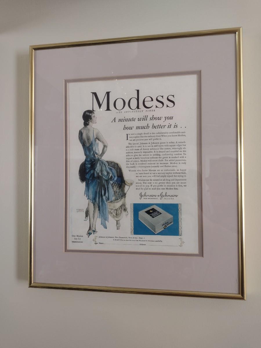 Vintage Johnson & Johnson Advertising Print for Modess Product Framed
