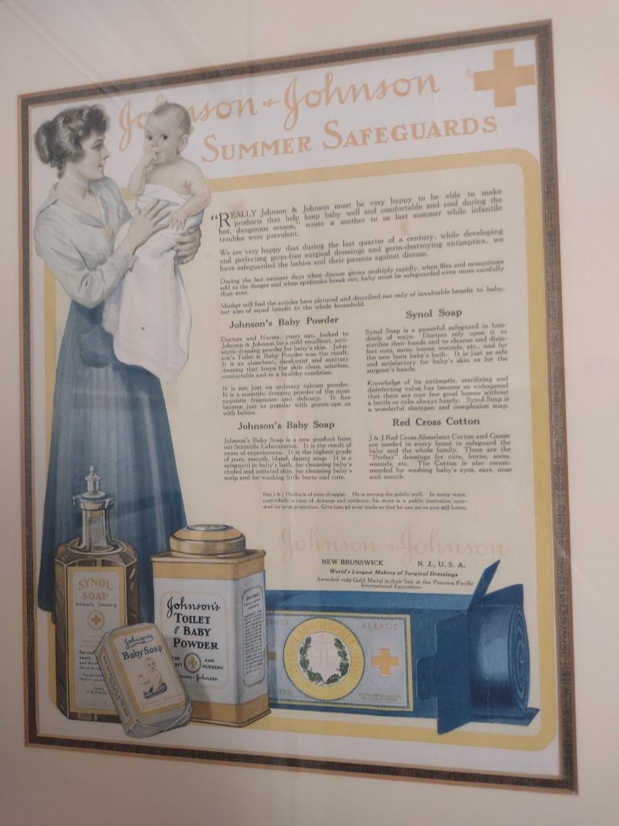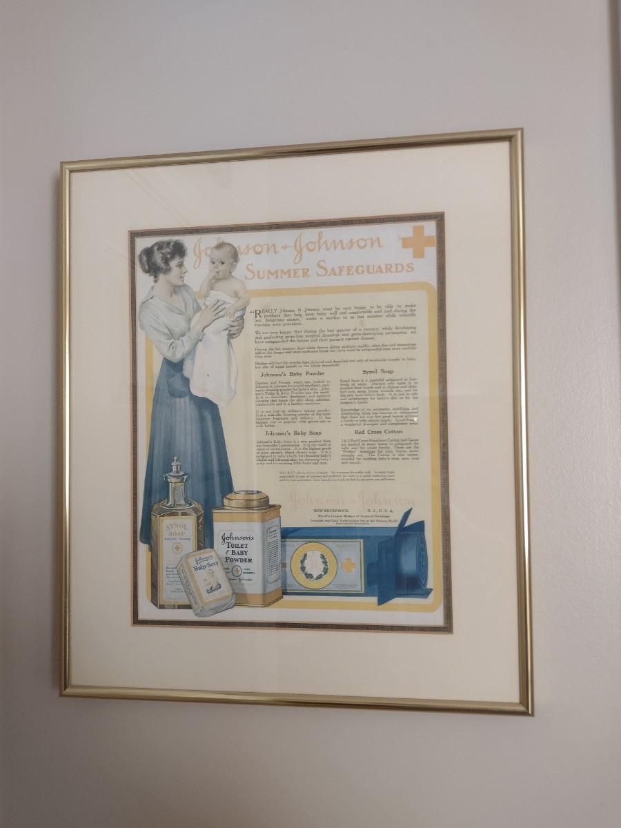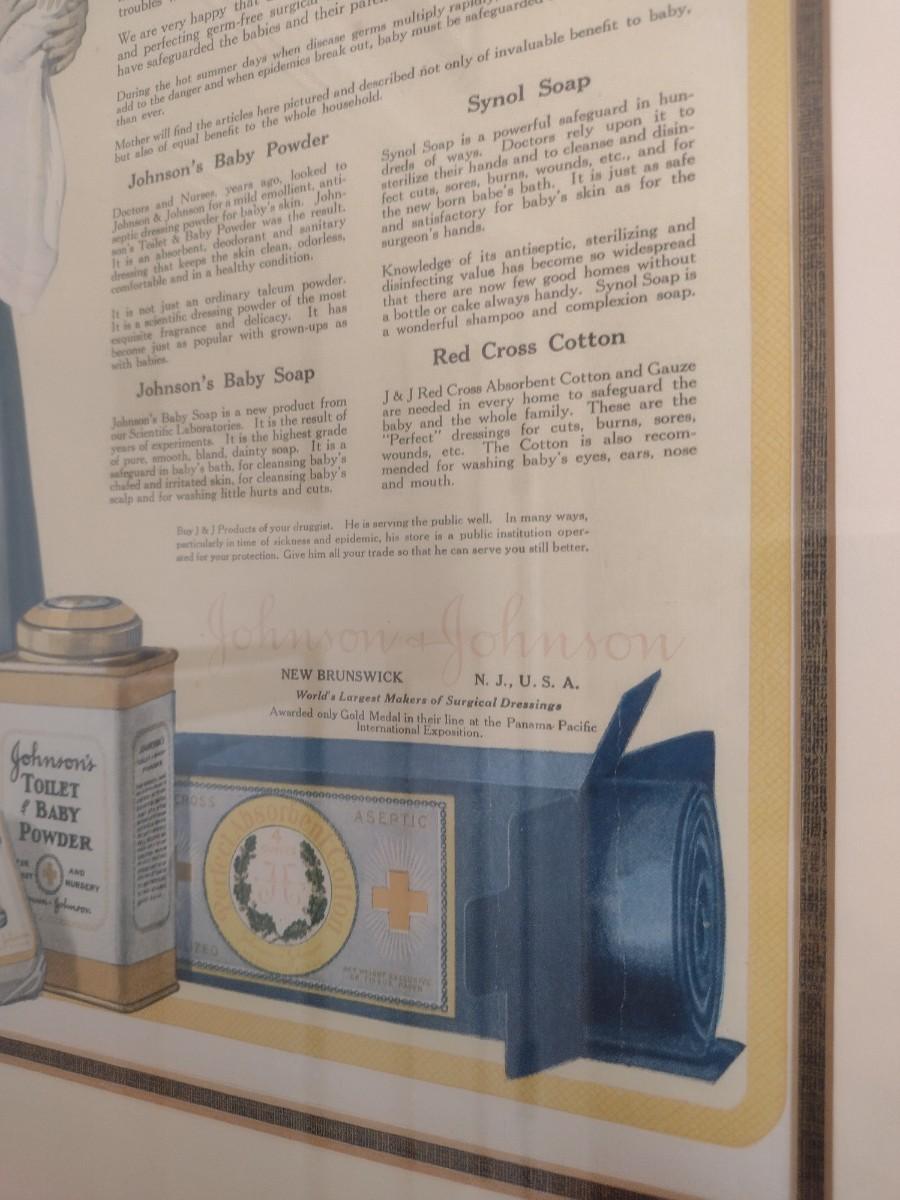 Vintage Johnson & Johnson Advertising Print for Toddler Hygiene Care Products Framed