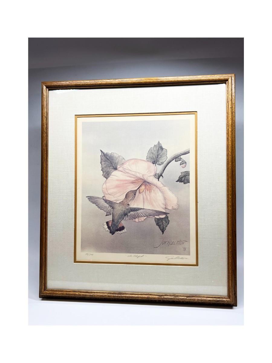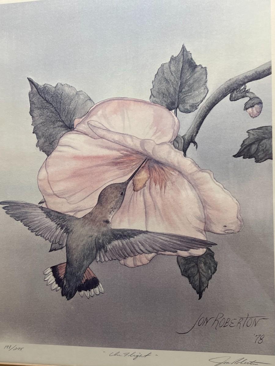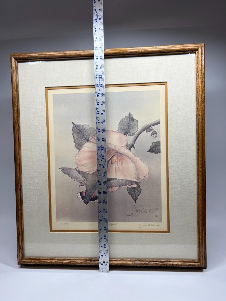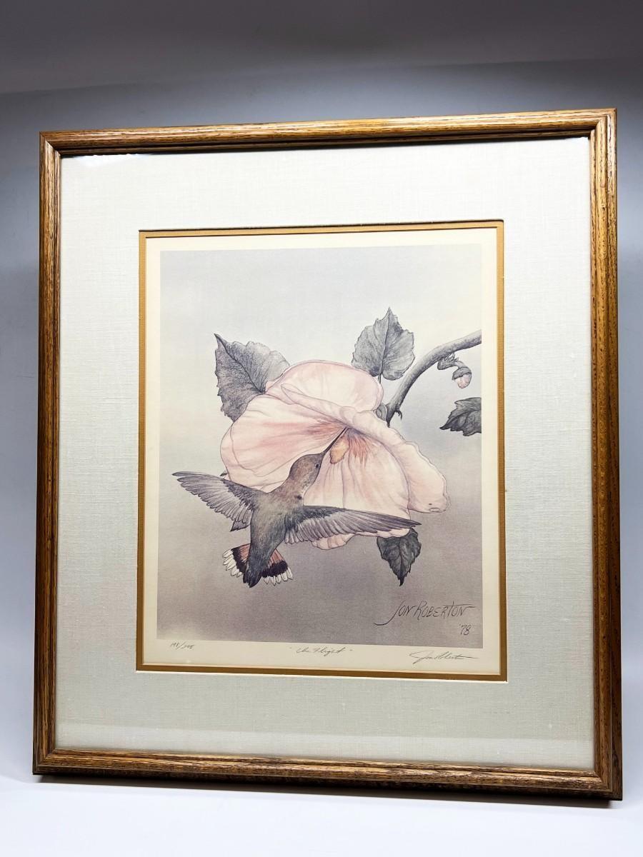 Vintage Jon Roberton Signed & Numbered Collectible Art Print In Flight Hummingbird