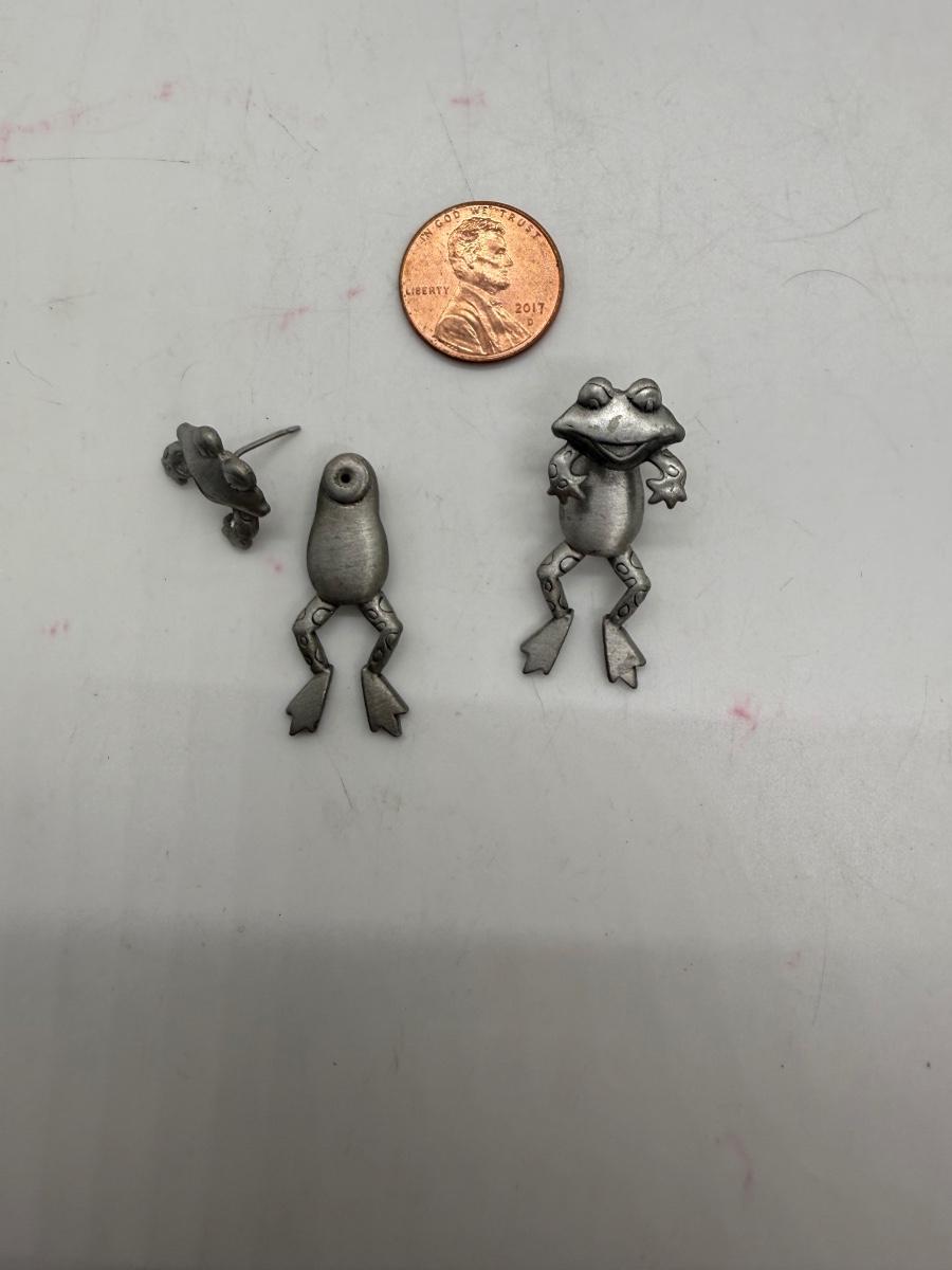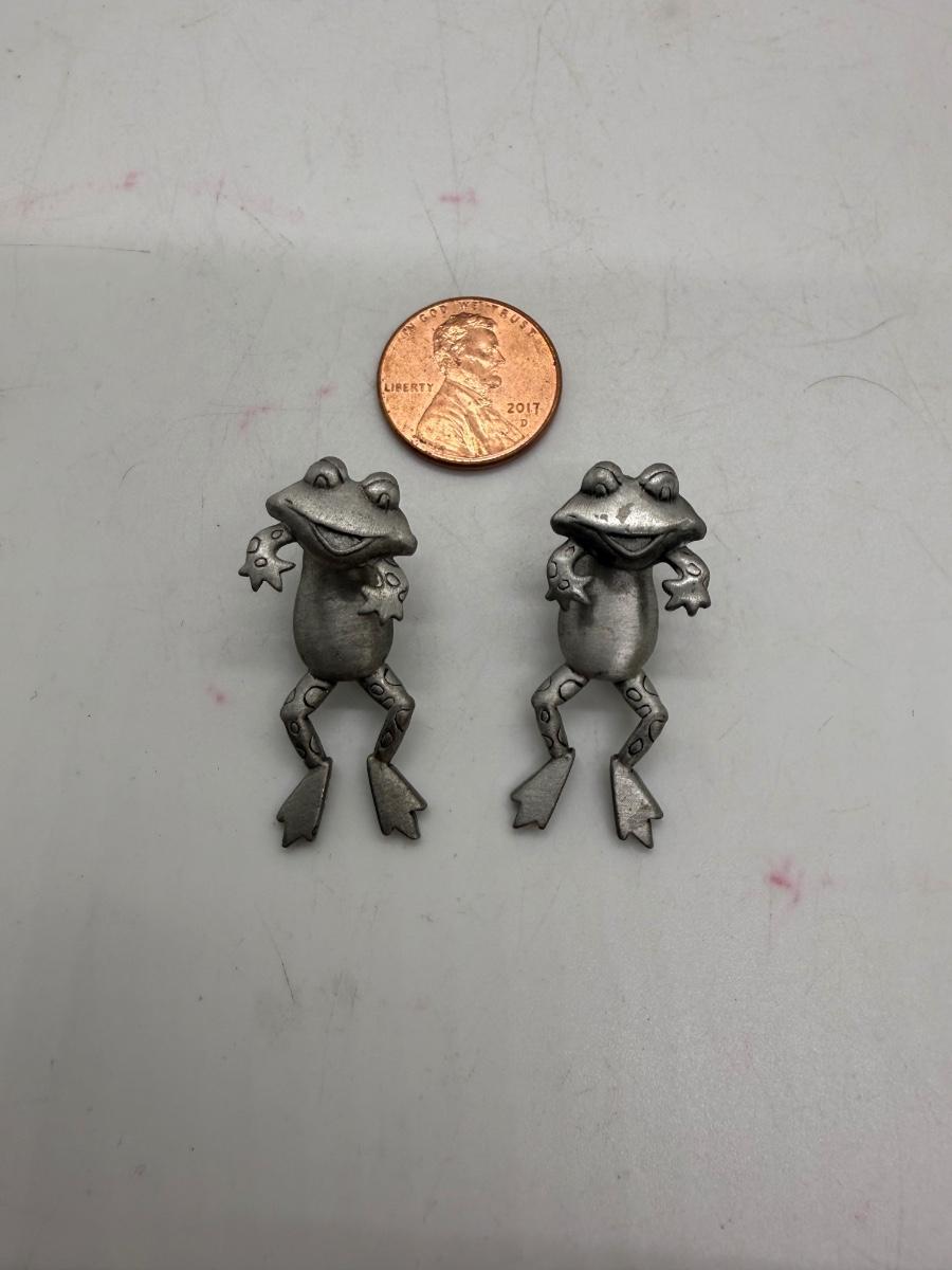 Vintage Jonette Jewelry (JJ) Pewter Dangling Clip-on Frog Earrings