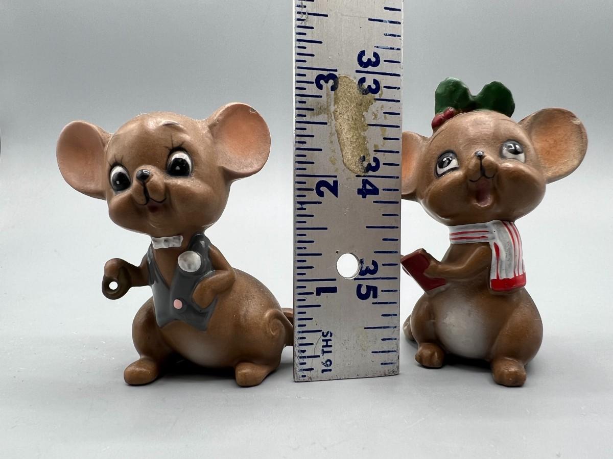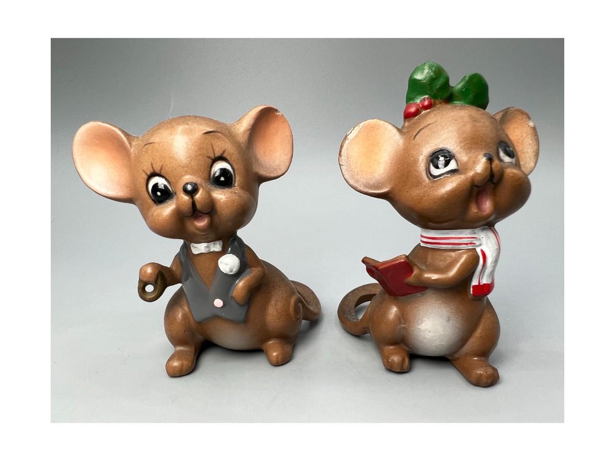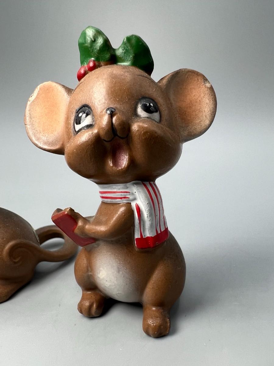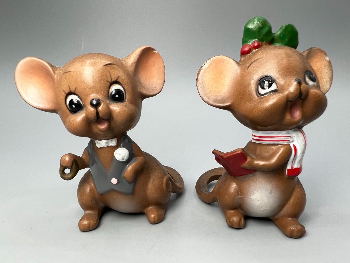 Vintage Josef Originals Mouse Village Wedding Groom & Caroling Christmas Ceramic Mice Figurines