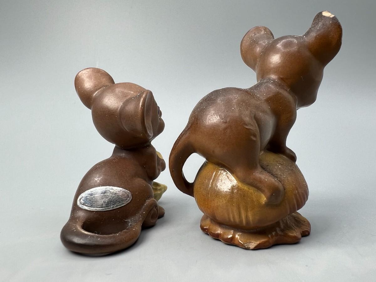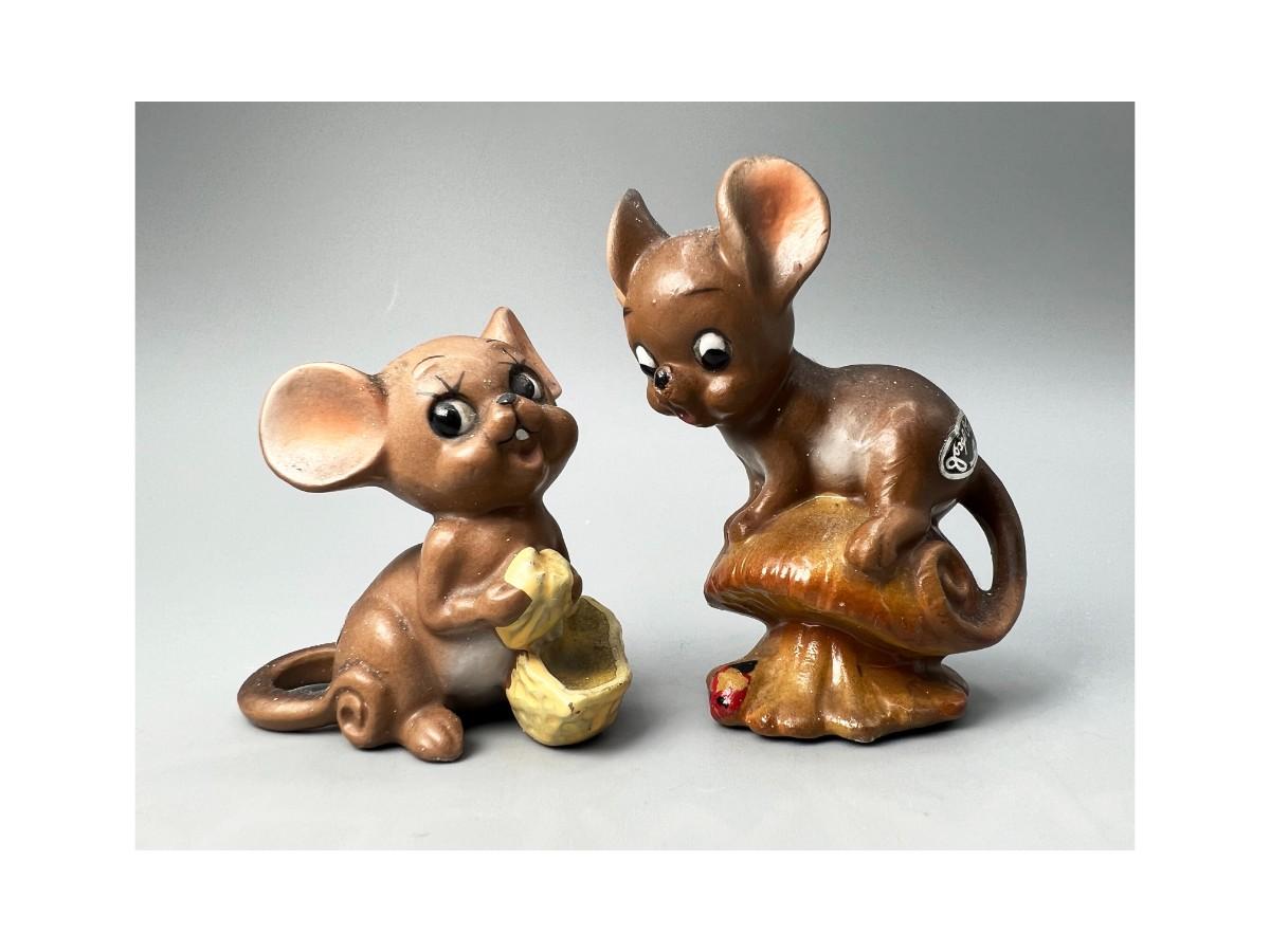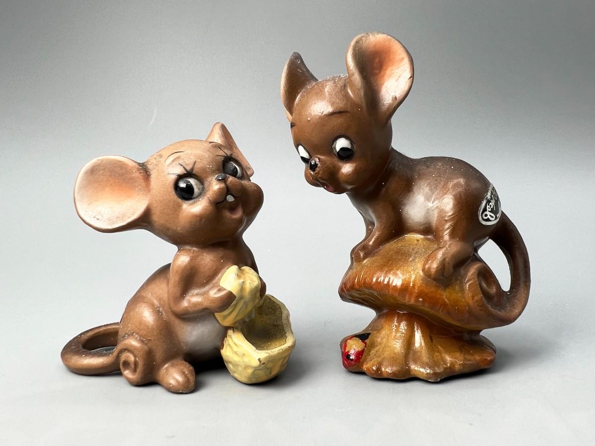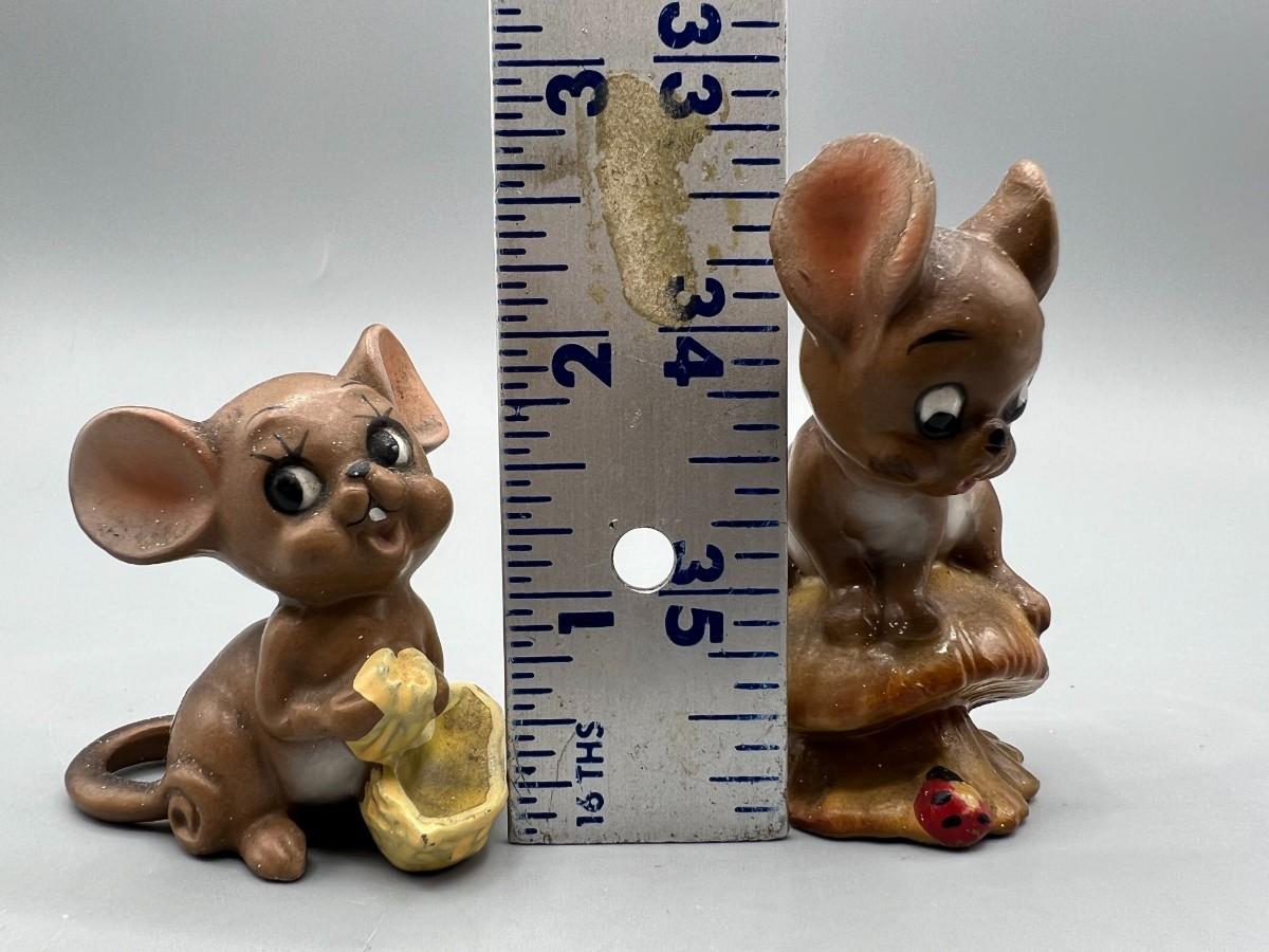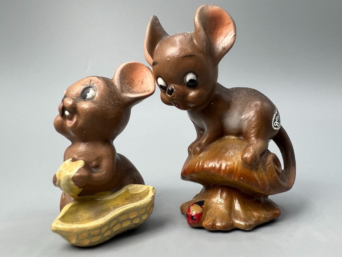 Vintage Josef Originals Mouse Village Mouse Eating a Peanut & Mushroom Ladybug Ceramic Mice Figurines