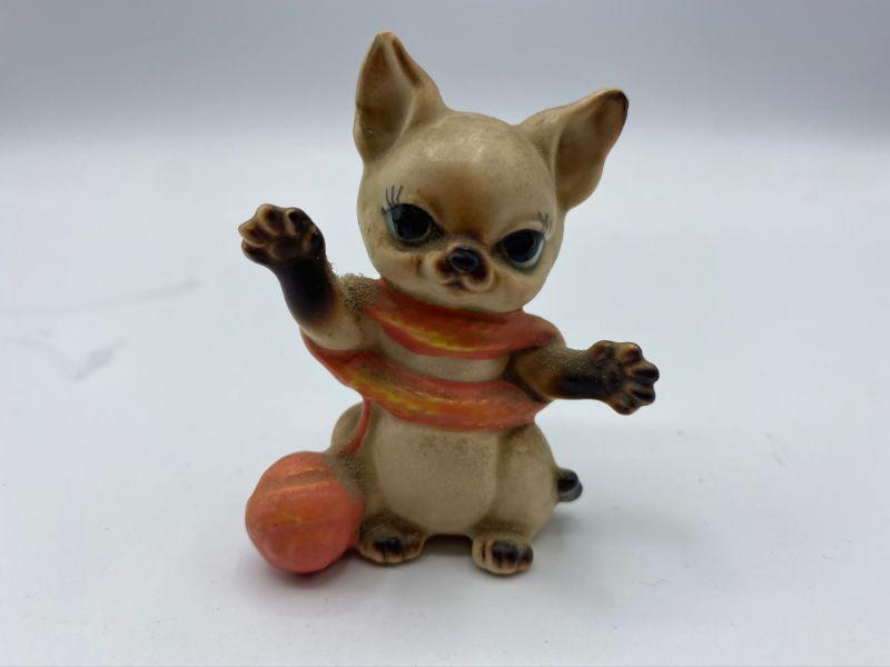 Vintage Josef's Originals Siamese cat with yarn figurine. Unfortunately he has a broken tail, not noticeable unless you turn it around. Still displays nicely from the front. About 3" tall.
