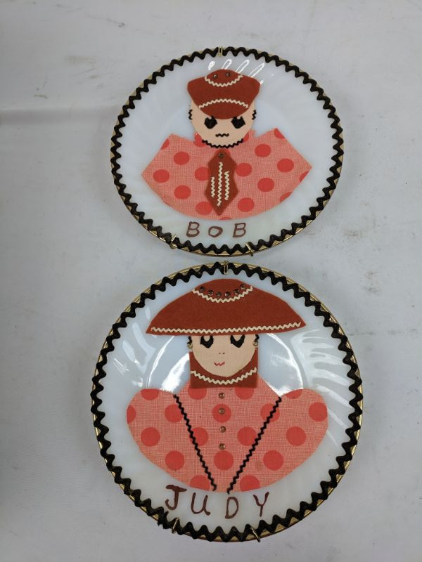 Vintage Judy & Bob Plates, Crafted on Fire King Milk Glass