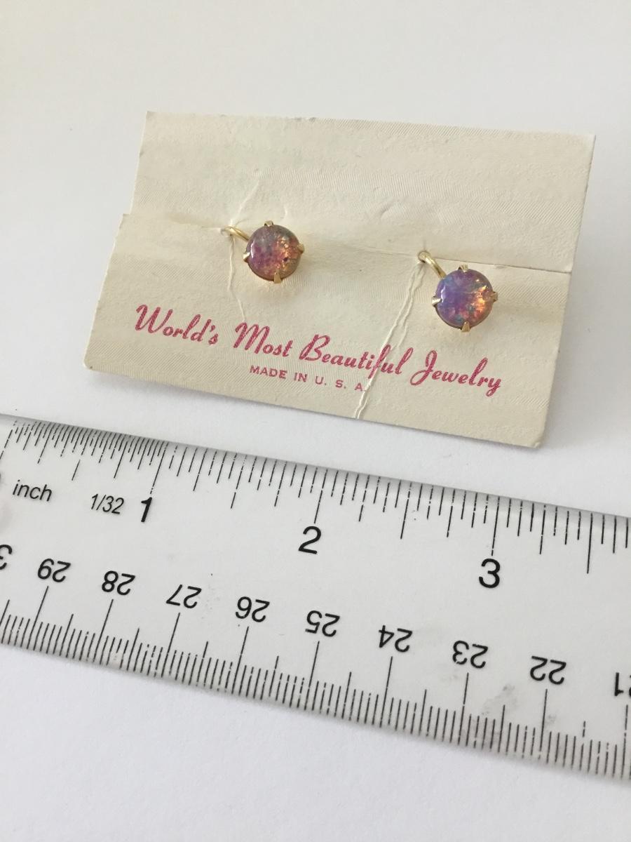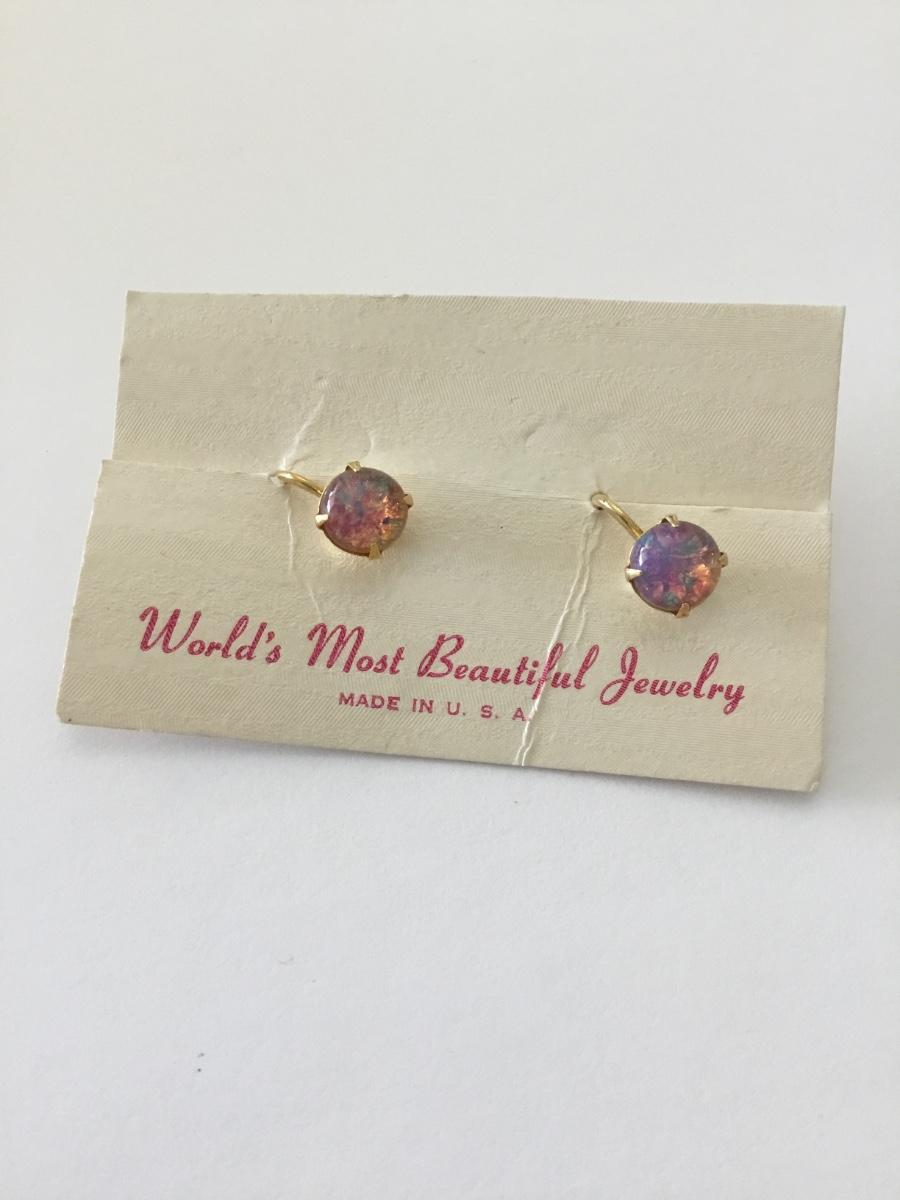 Vintage Judy Lee opal stone gold tone clip on earrings