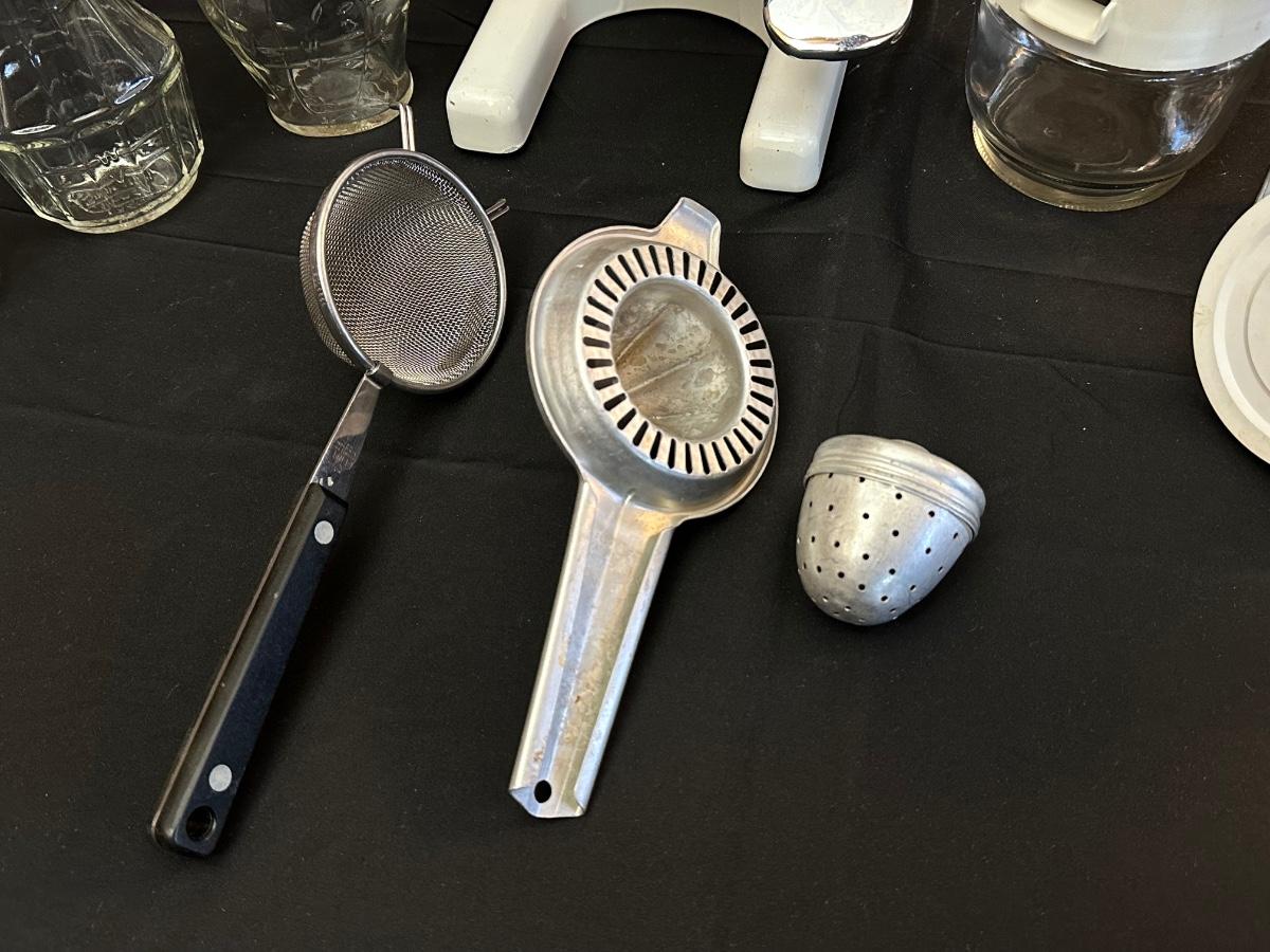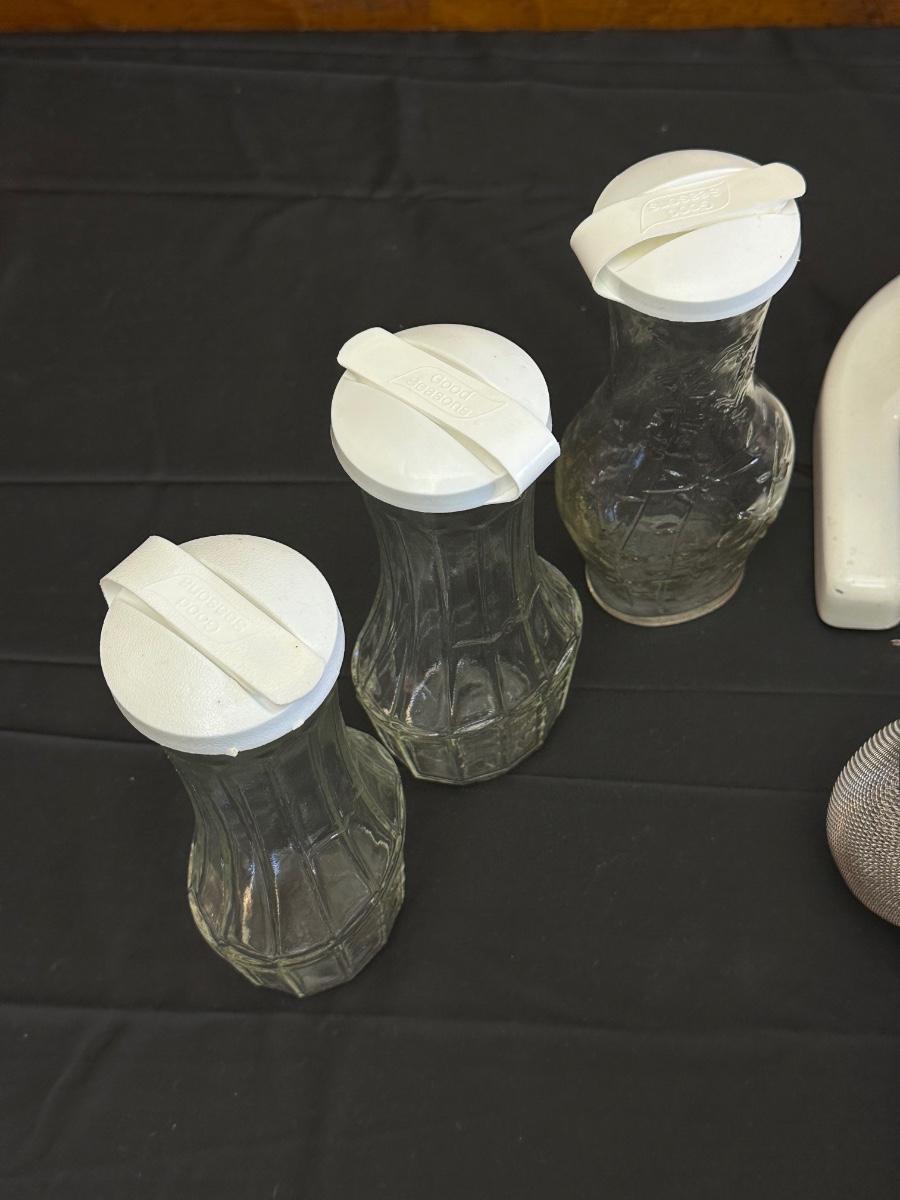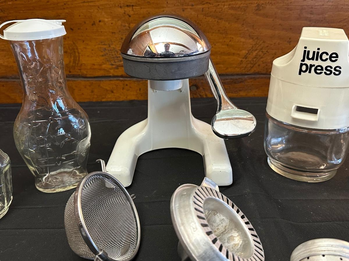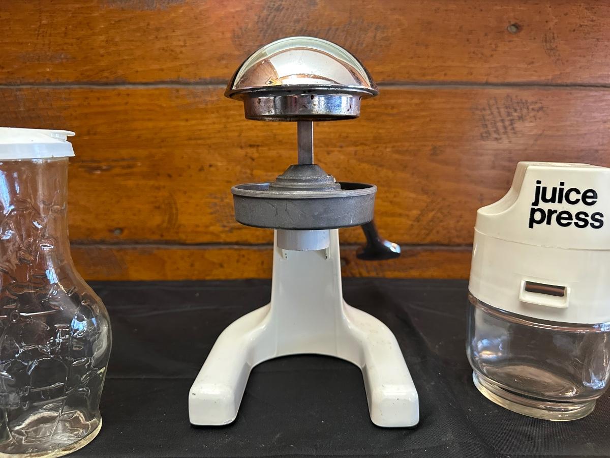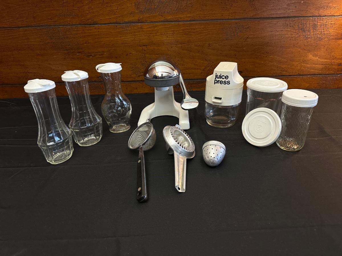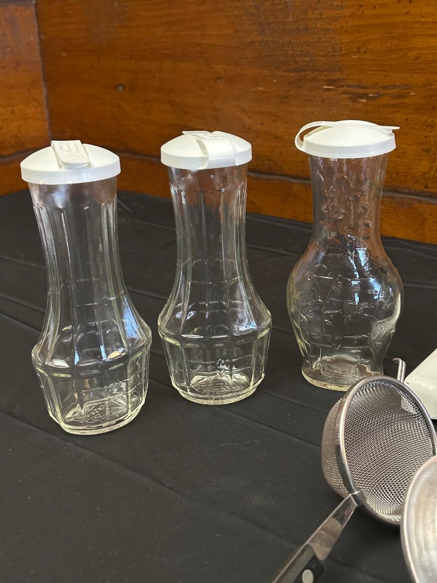 Includes storage glasses for juice — all items are in used condition. Also comes with Luminarc glass and two lids!