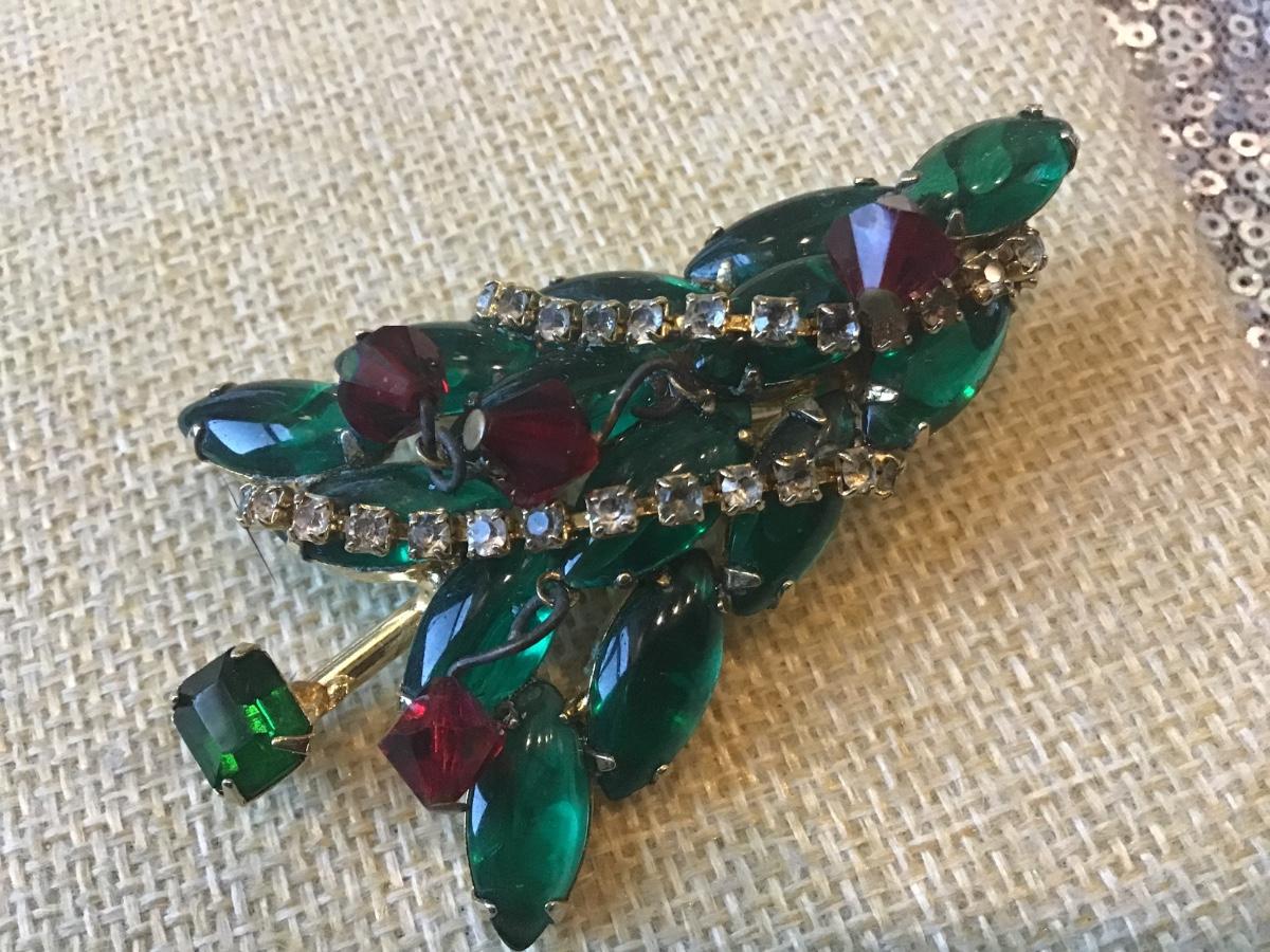 Vintage JULIANA D&E Gold Tone Christmas Tree Brooch Pin Beautiful 😍