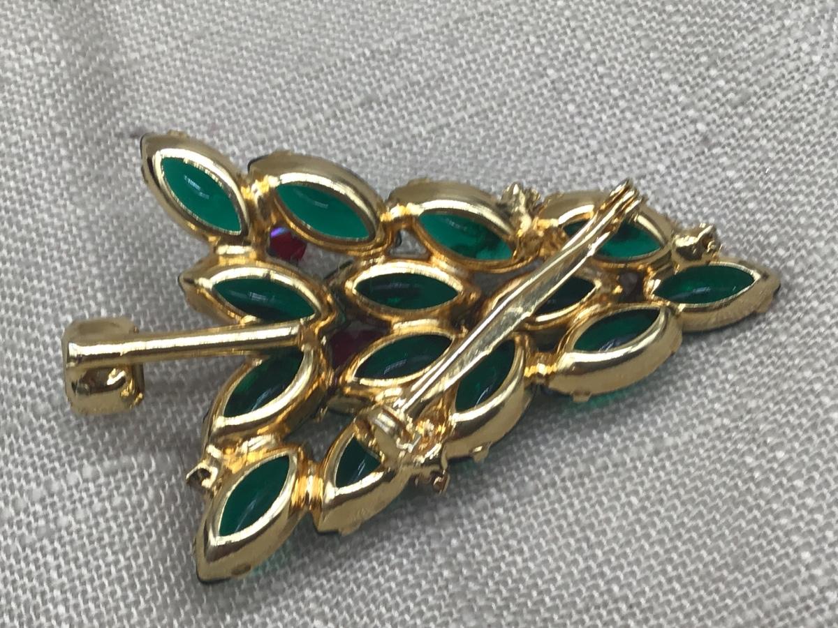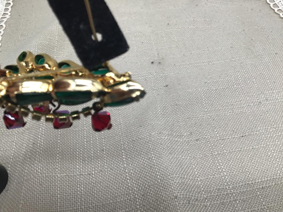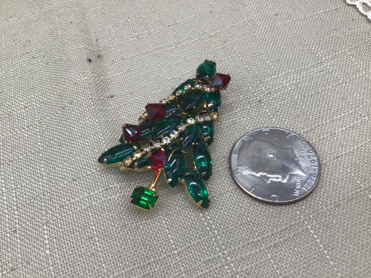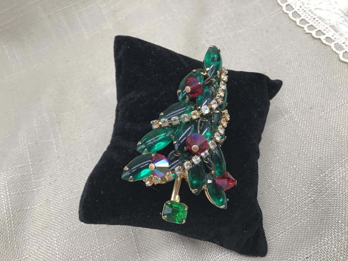 Vintage JULIANA style Brooch Christmas Tree Green Clear And Crystals Gold...