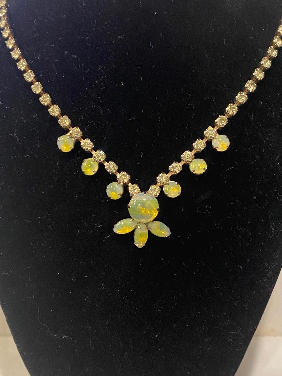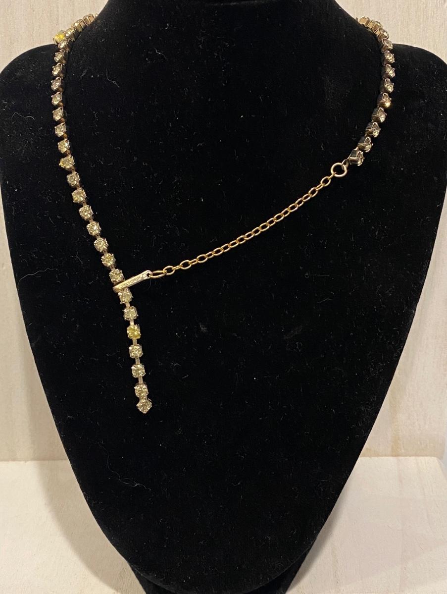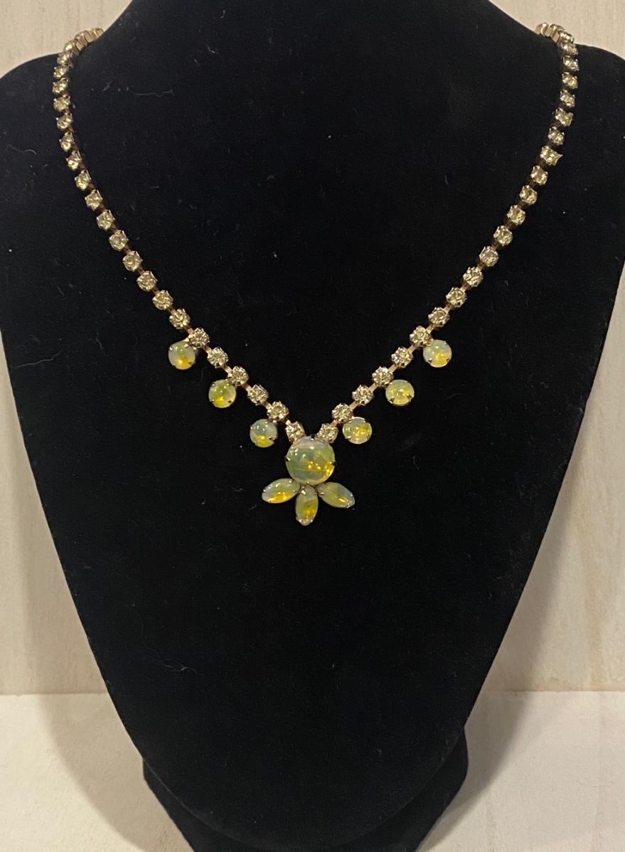 Vintage Juliana Style Yellow Aurora Borealis Glass and Rhinestone Necklace.
