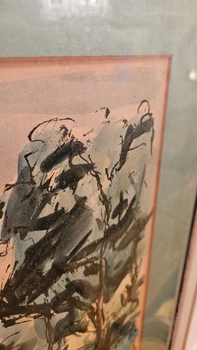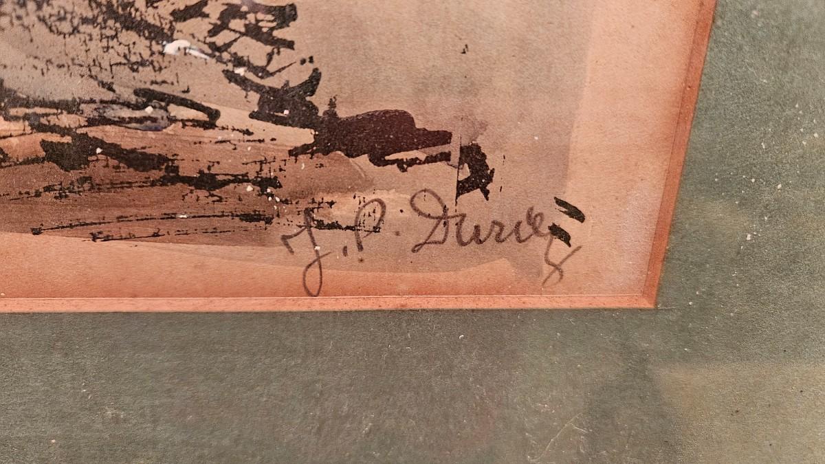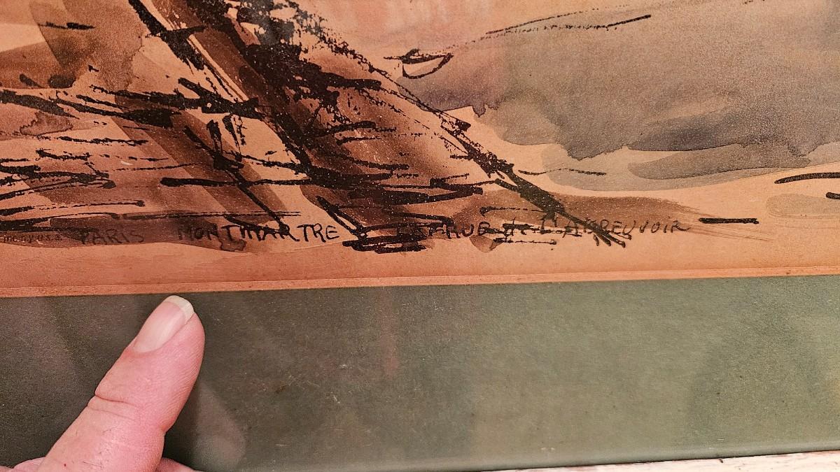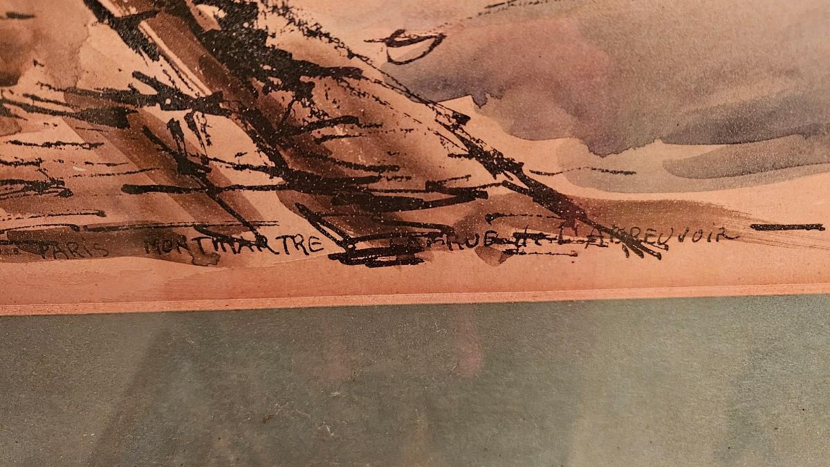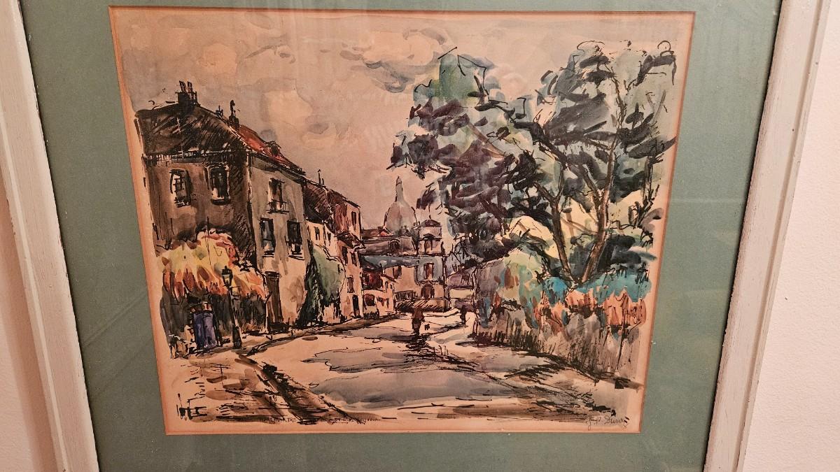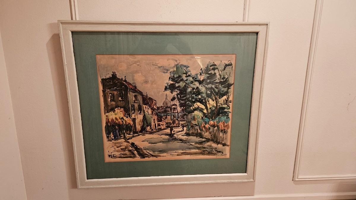 Vintage Julien P Duriez Framed Watercolor of French Montmartre Le Moulin Dela Galette