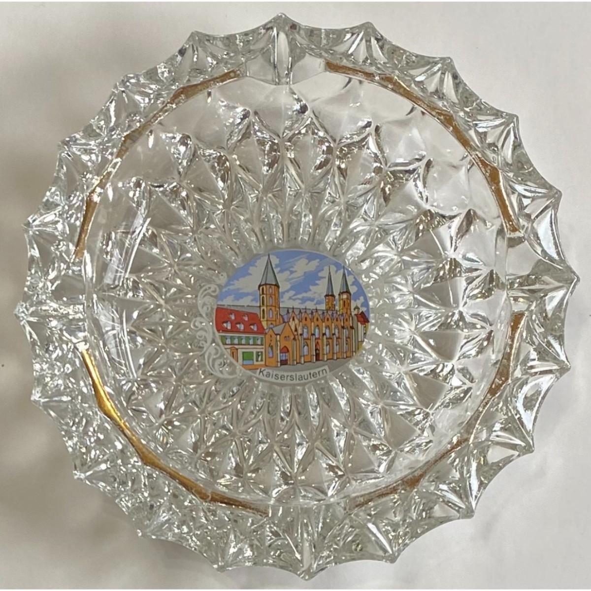 Vintage Kaiserslautern Germany Solid Cut Glass Ashtray Rhineland-Palatinate