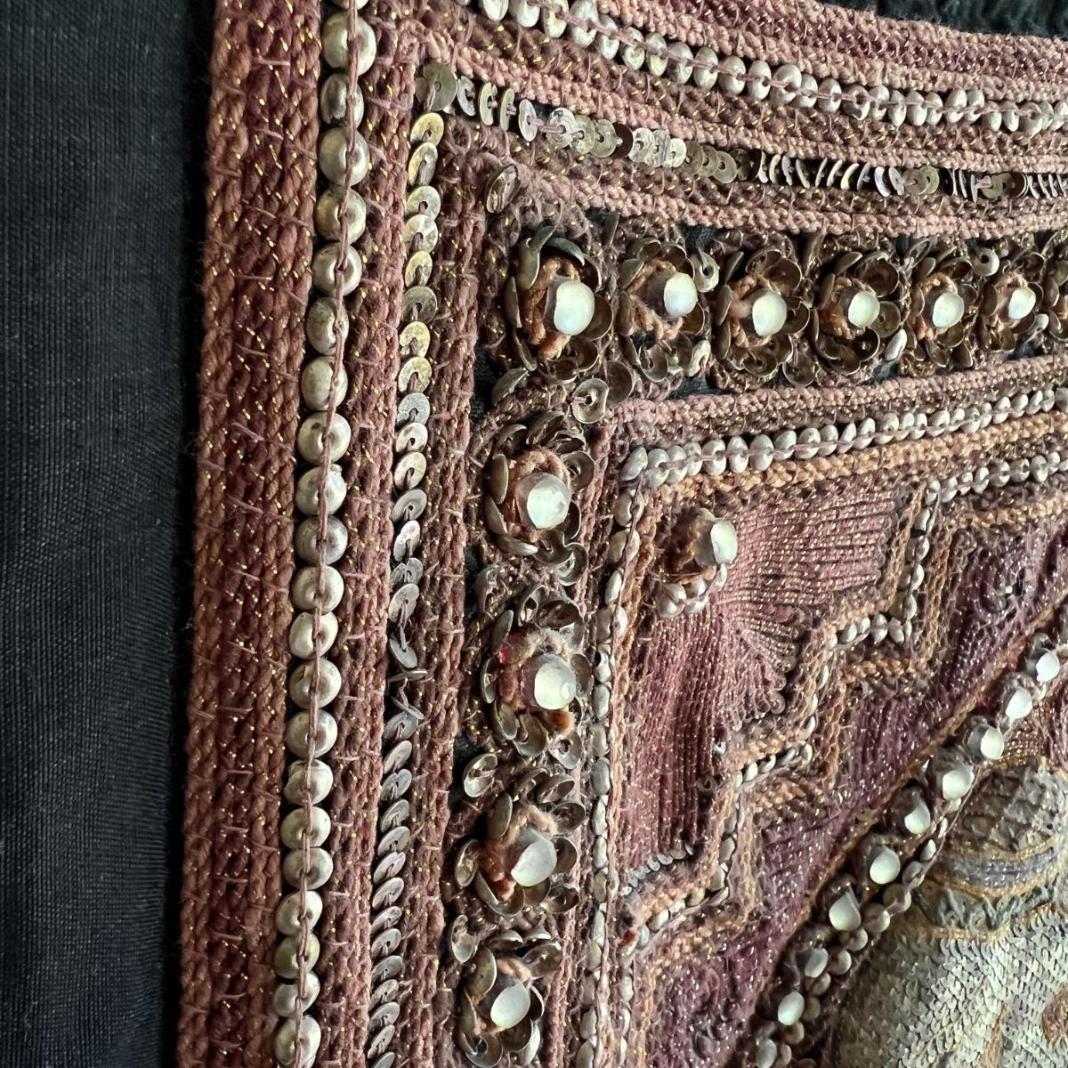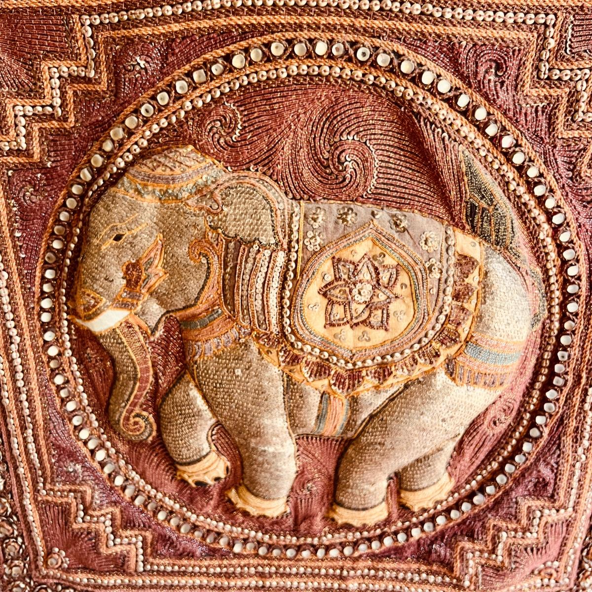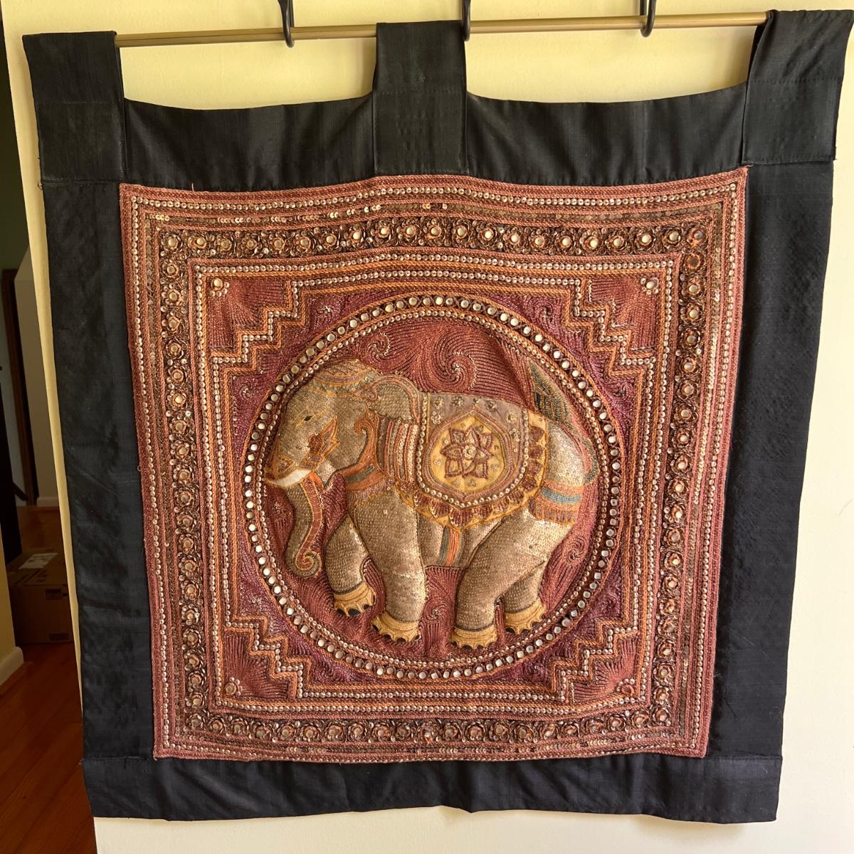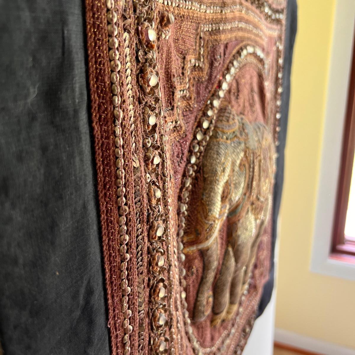 Vintage Kalaga Sequin Embroidered Textile Elephant Hanging Art