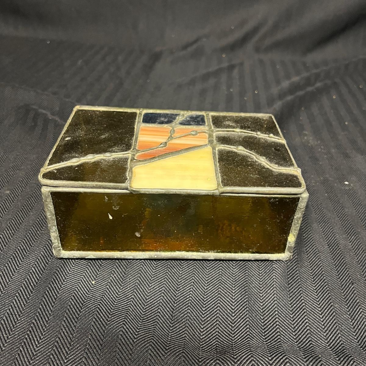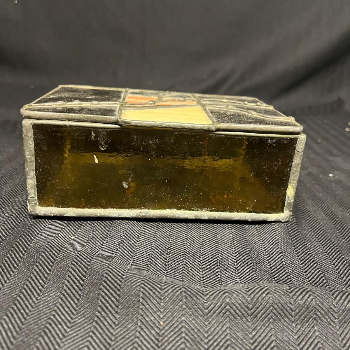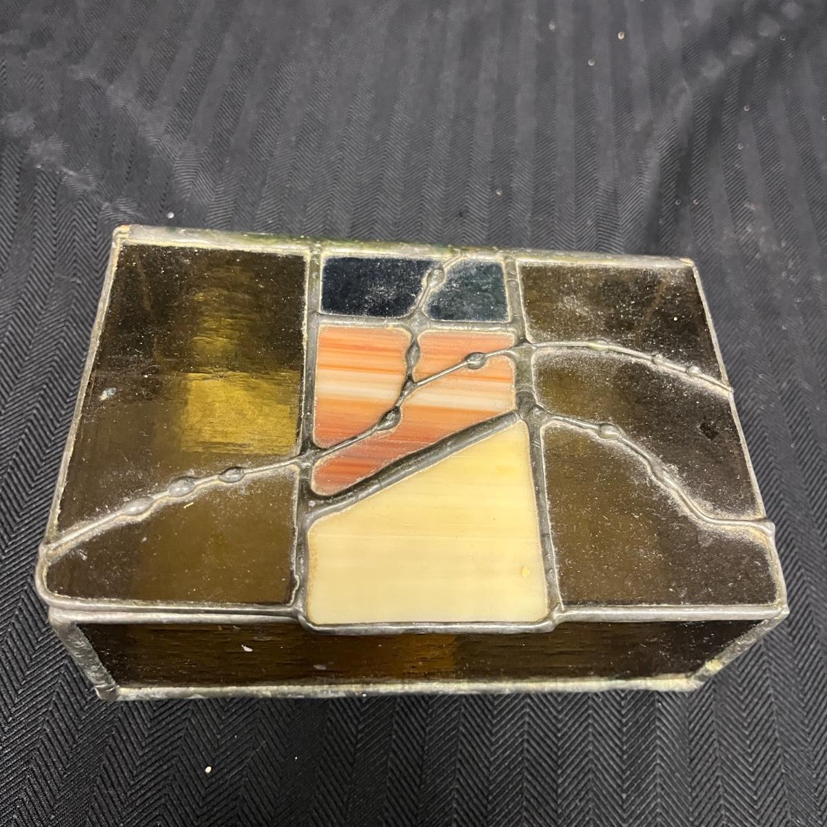 Lot includes a leaded glass box and a signed vintage kaleidoscope. Box measures 6” x 4” x 2.5”H.