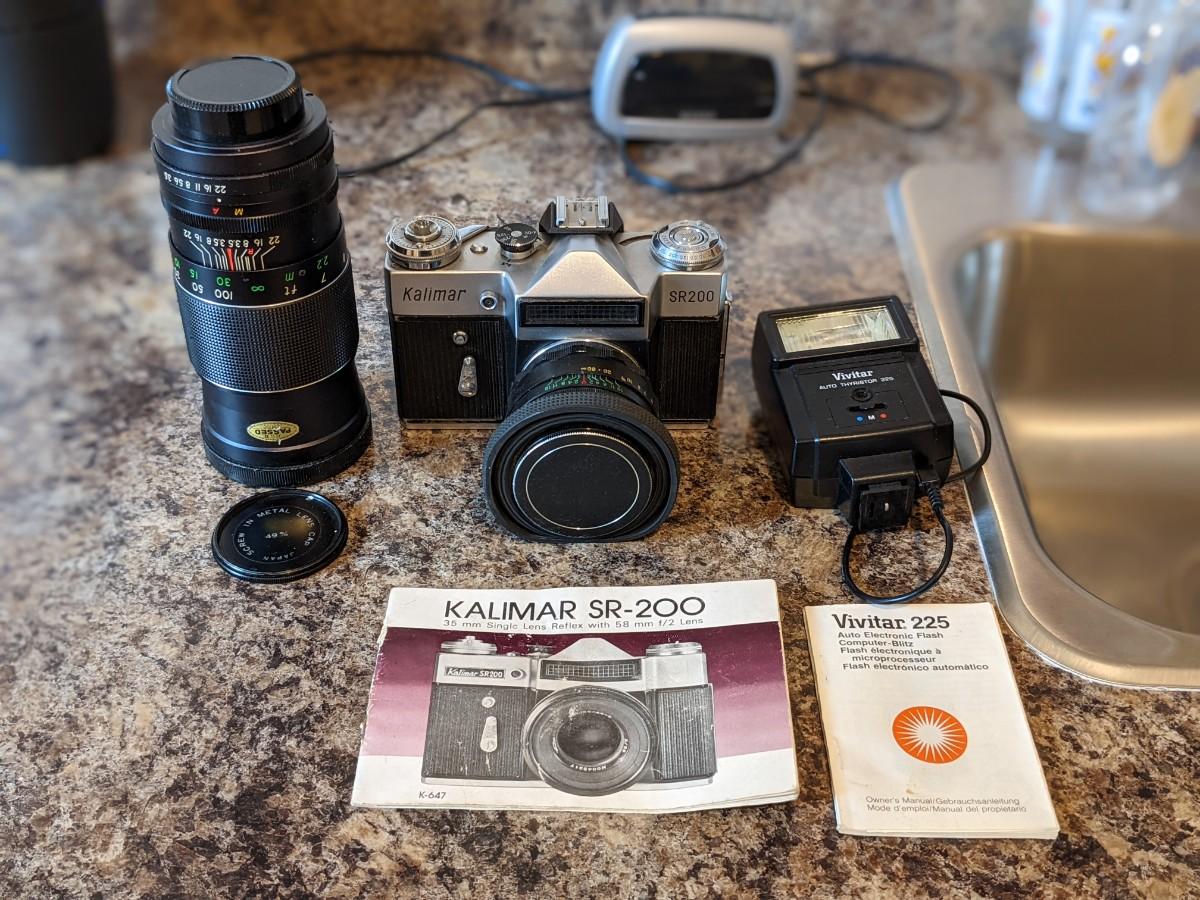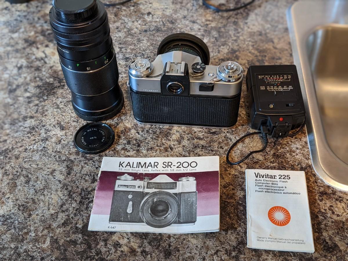 Vintage Kalimar SR-200 "USSR" 35 mm Camera, Zoom Lens, Vivitar Flash