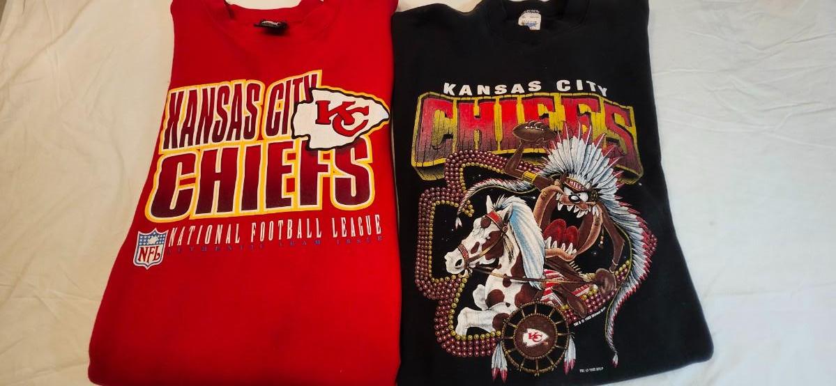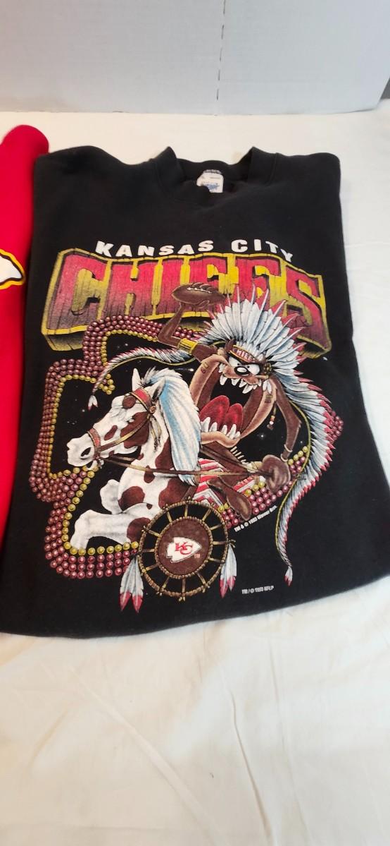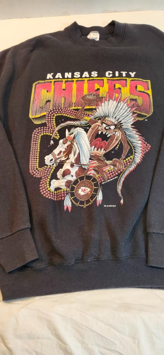 Vintage Kansas City Chiefs Sweatshirts including 1993 Warner Bros Taz Looney Tunes