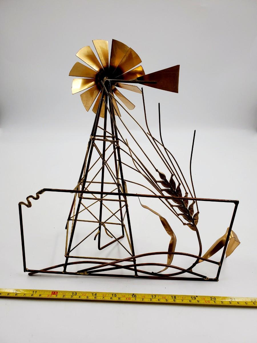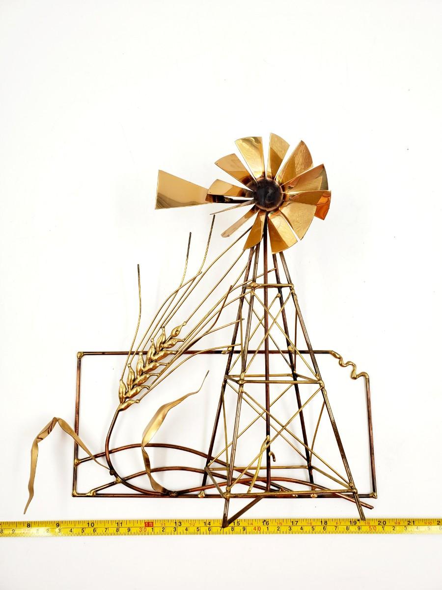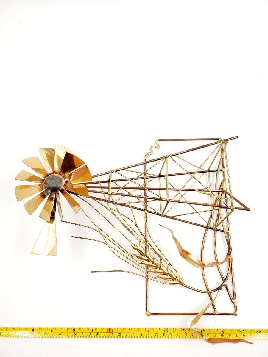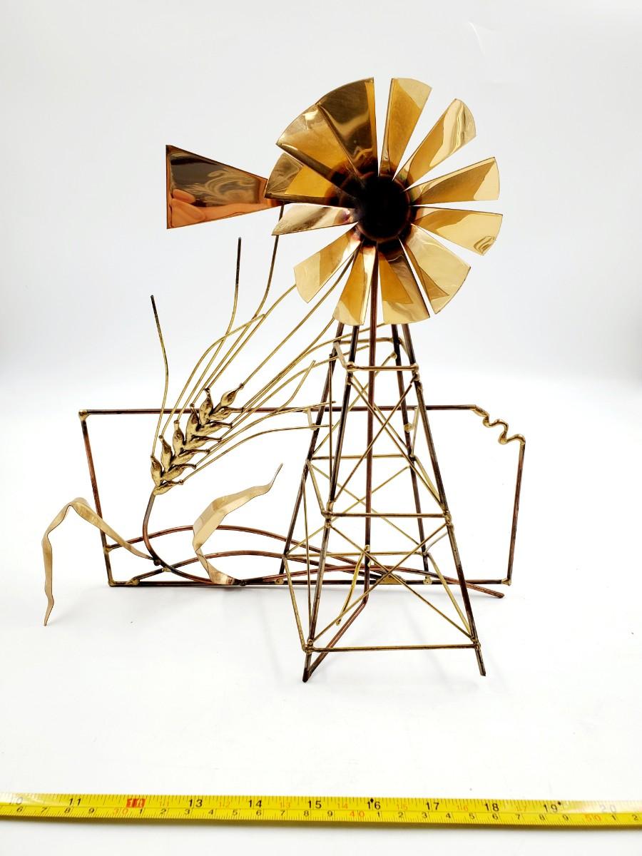 Super cool brass colored Kansas Wheat and Windmill metal sculpture, may be brass or part brass, good condition and an awesome addition to any Kansas collection!