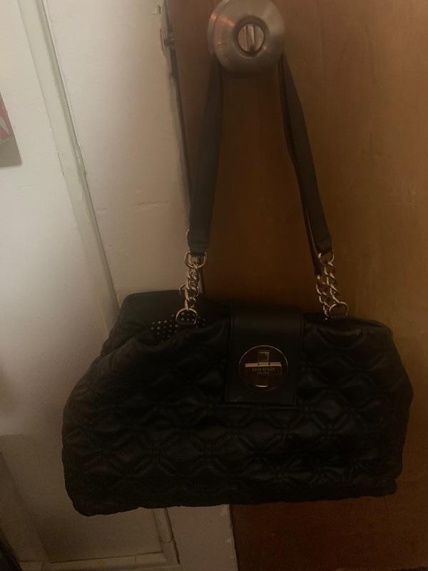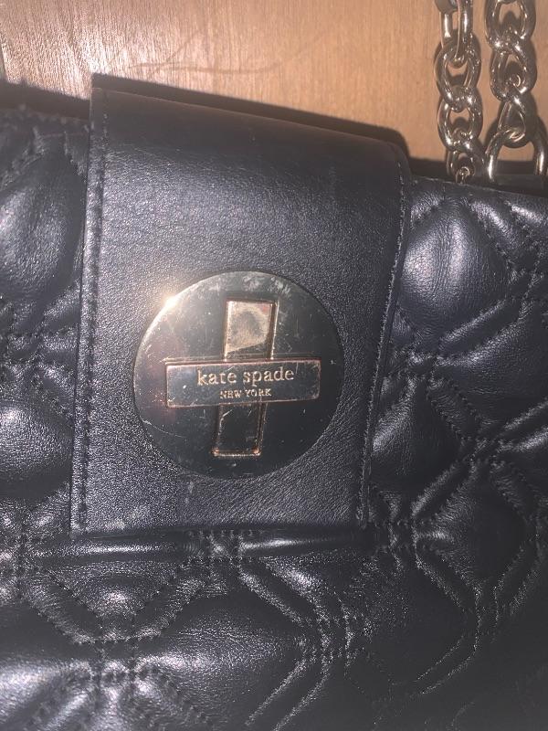 Vintage Kate Spade Black crosshatch leather purse with gold accents. Minor wear good condition