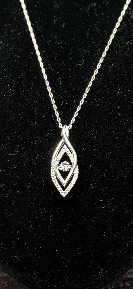 vintage Kay Jewelers sterling silver and floating diamond pendant and necklace