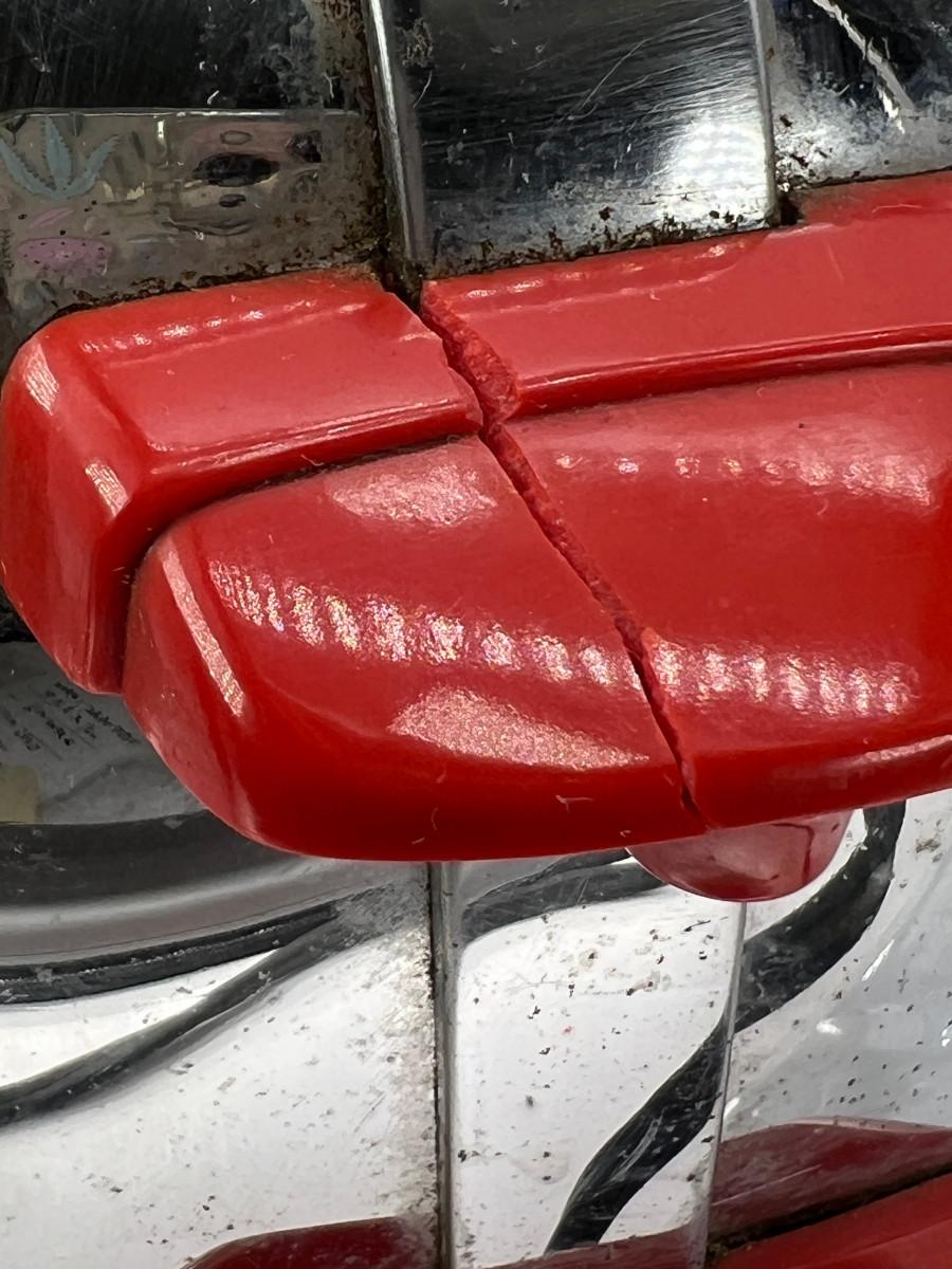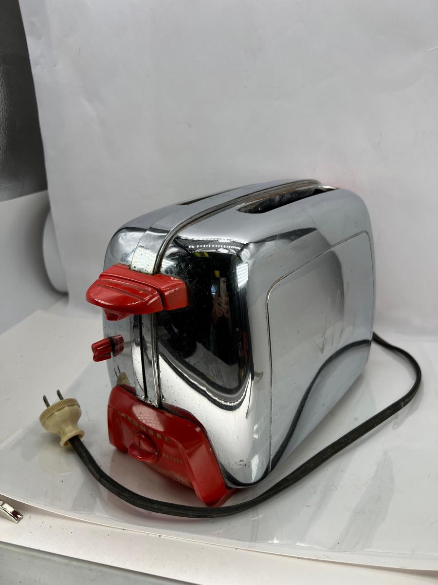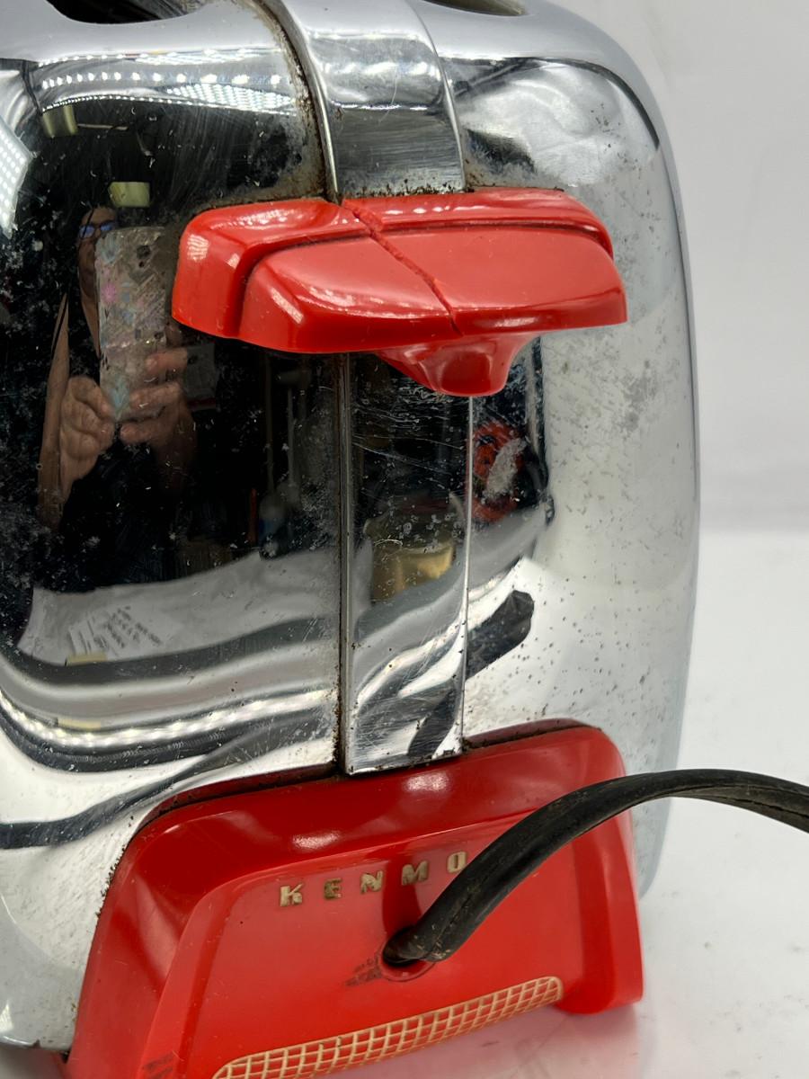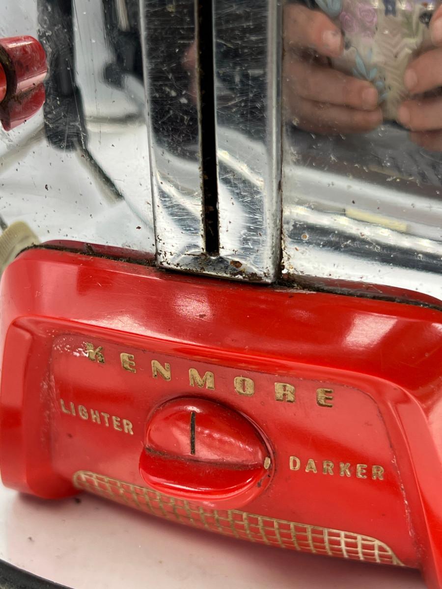 Art Deco Kenmore Toaster Red Bakelite Handles & Feet, one handle is cracked. If you have a retro kitchen, this is an absolute must! Unit is being sold as a "non-working" vintage electronic device that should be gone over by a qualified technician prior to use.