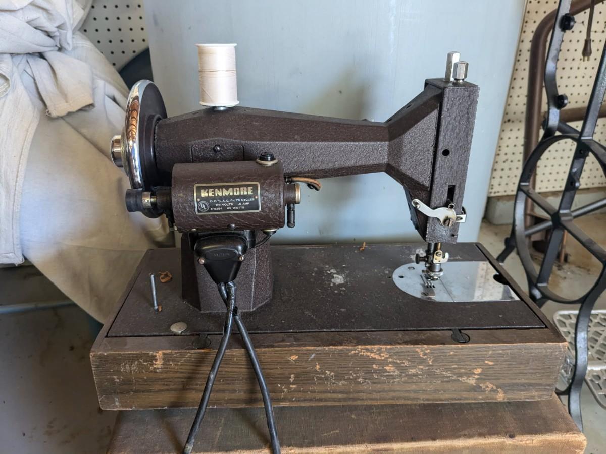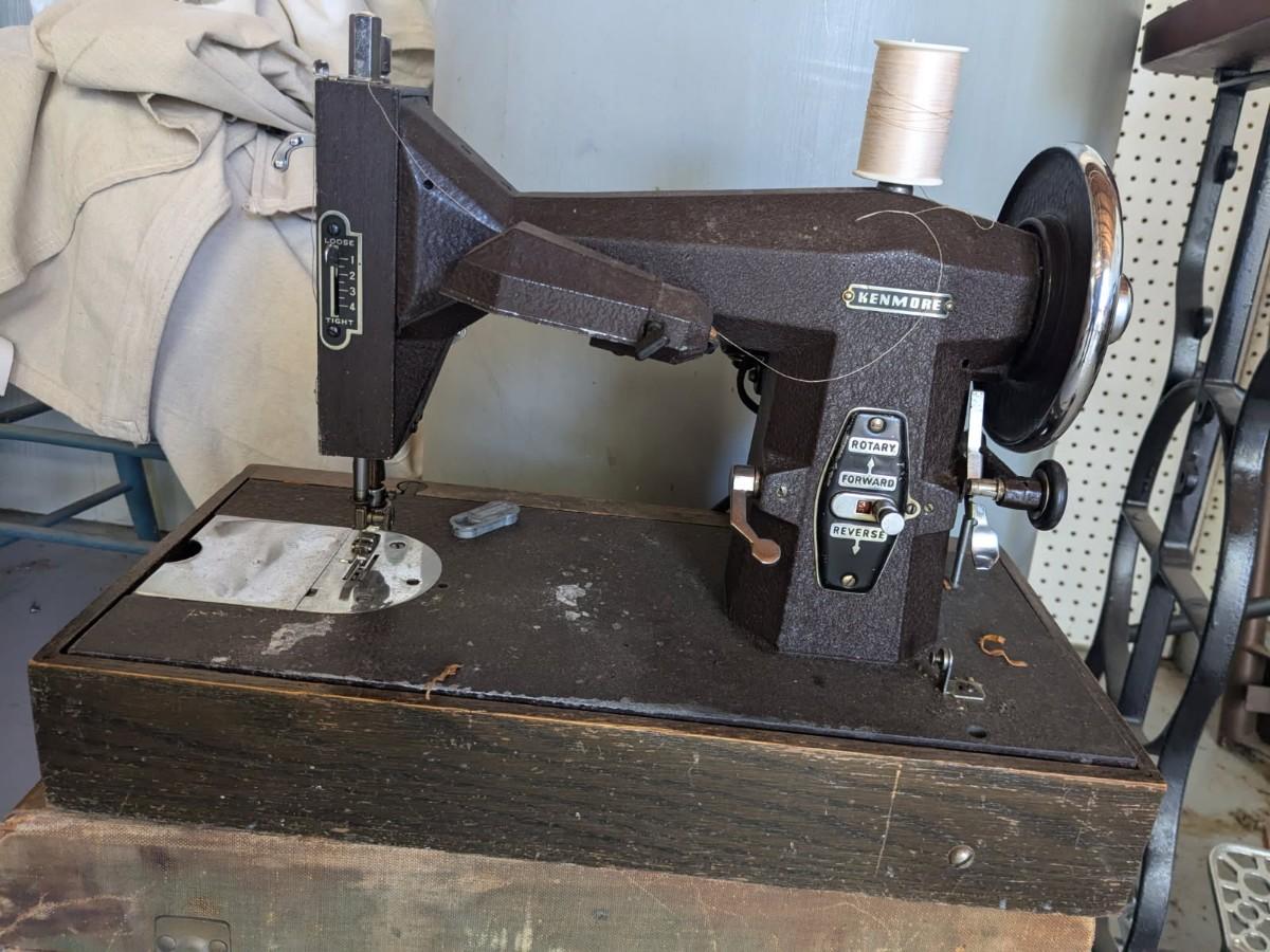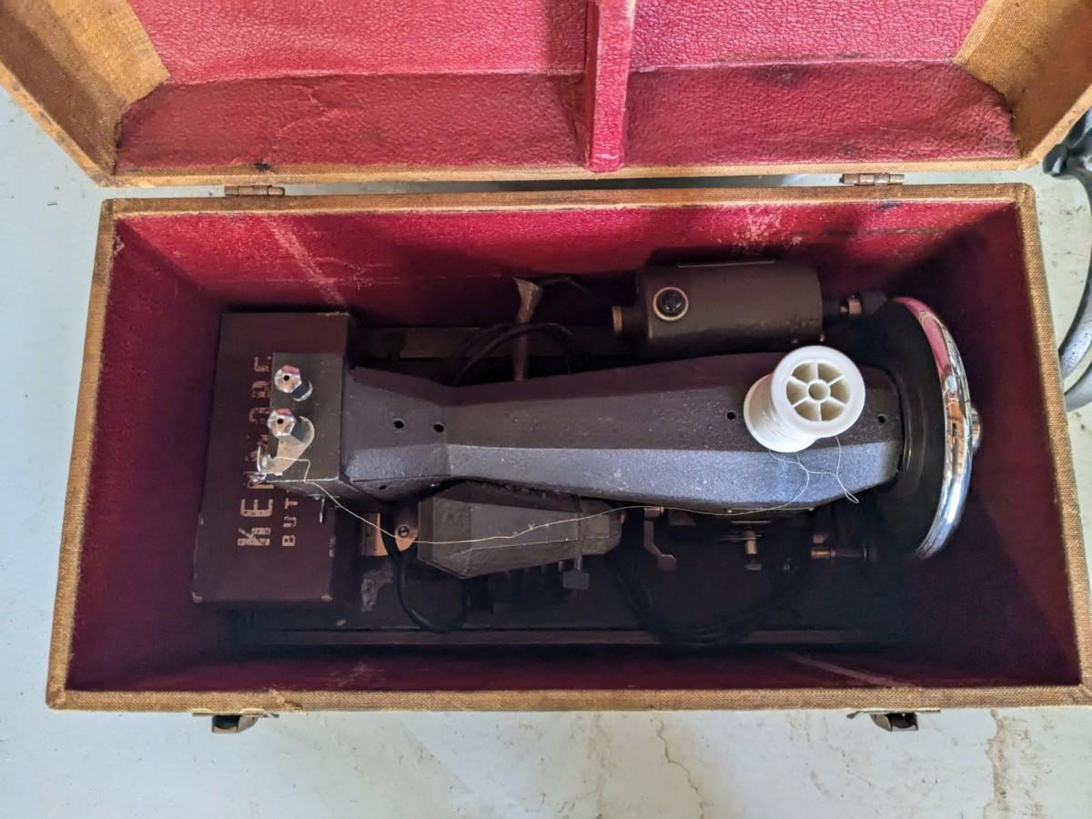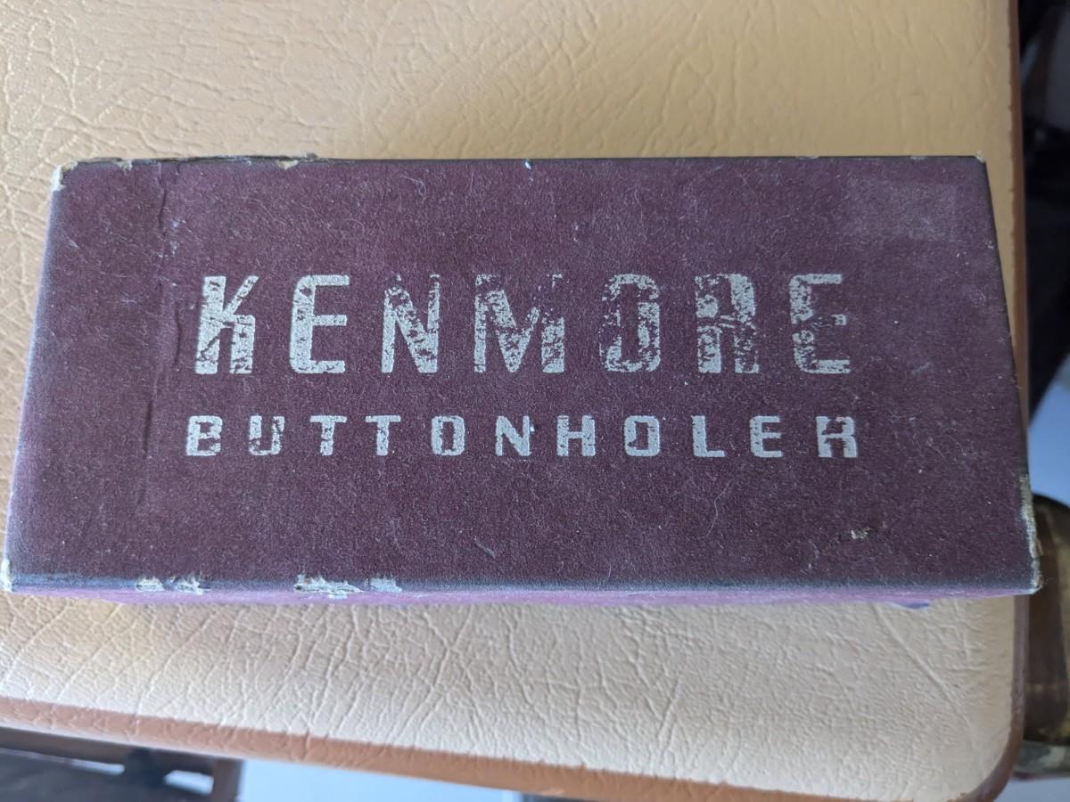 Vintage Kenmore Sewing Machine is stored in its original box, comes with buttonhole attachment, in good shape and works good