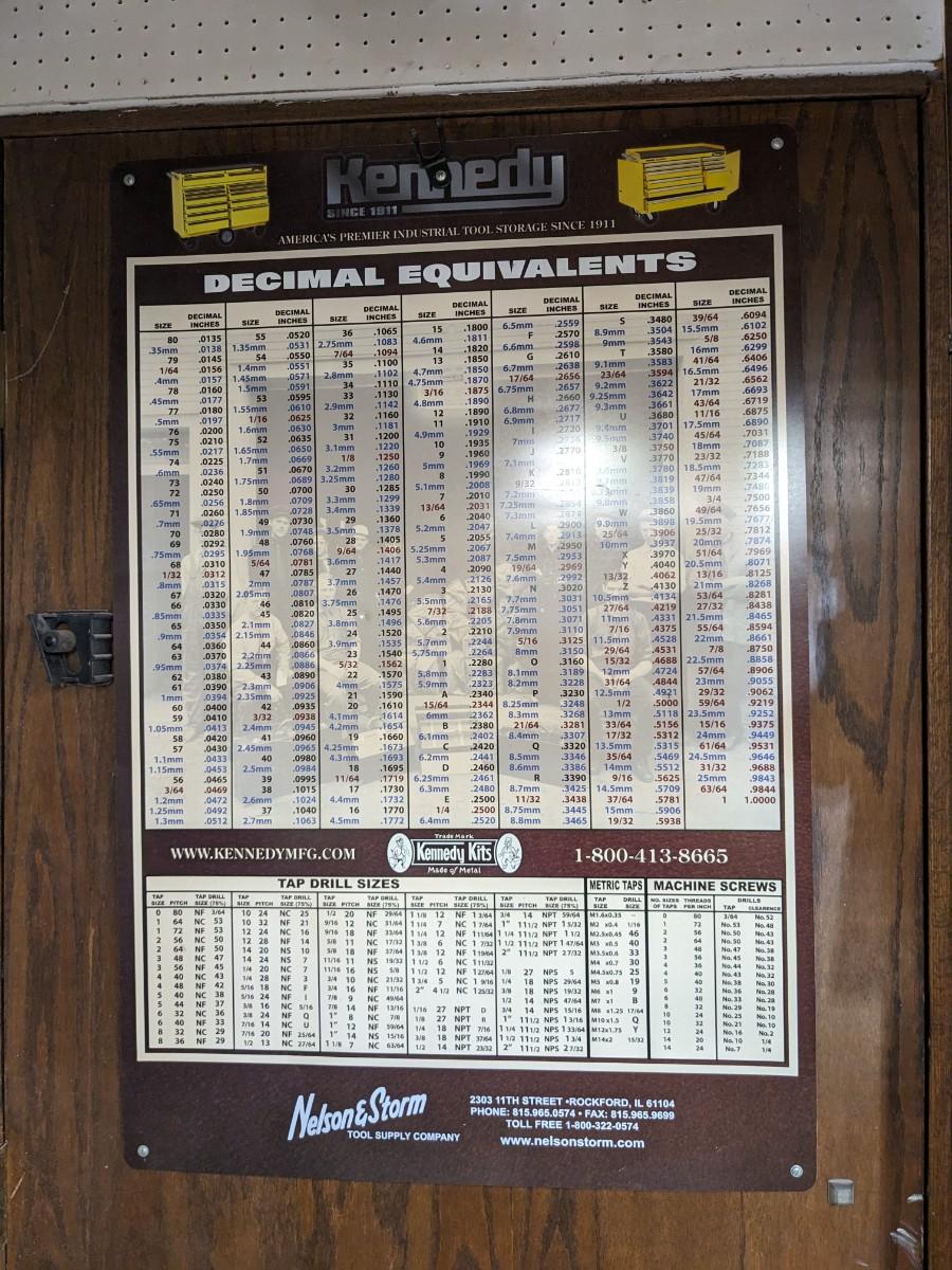 Vintage Kennedy Cardstock Decimal Equivalents Chart