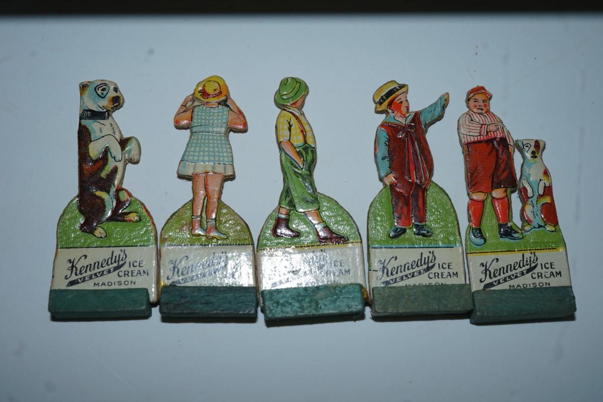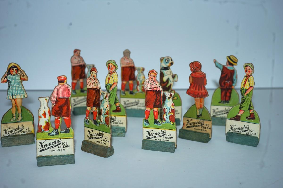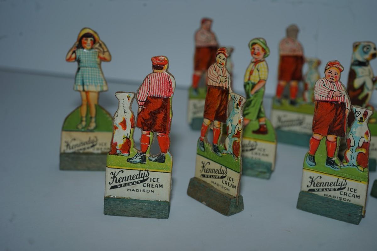 grouping of 11 Kennedy Dairy carboard cut outs of children and advertising of Kennedy Dairy of Madison, WI