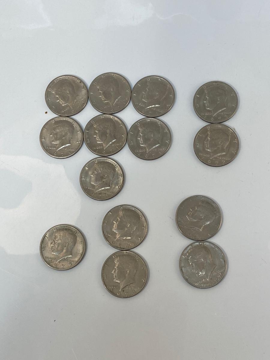 Vintage Kennedy Half Dollar Lot Circulated 1970s US Coin Money $0.50. Coins have been circulated but are in good condition, very little wear. Dates range from 1971 to 1976. Total of 14 coins.
