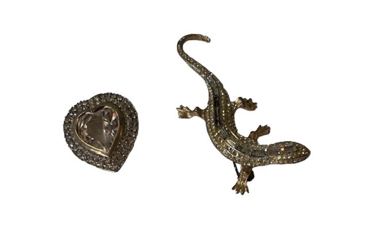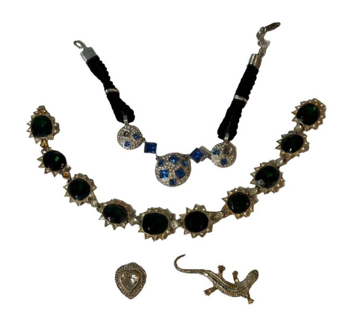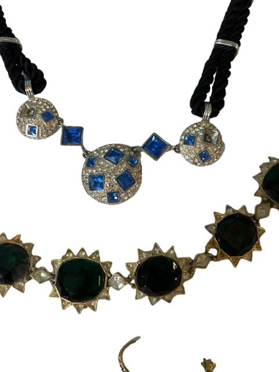 Includes two necklaces and two pins. Some stones are missing. Total of 4 pieces.