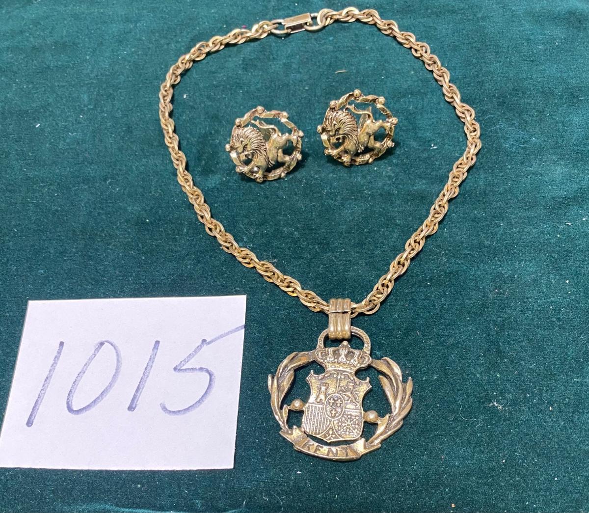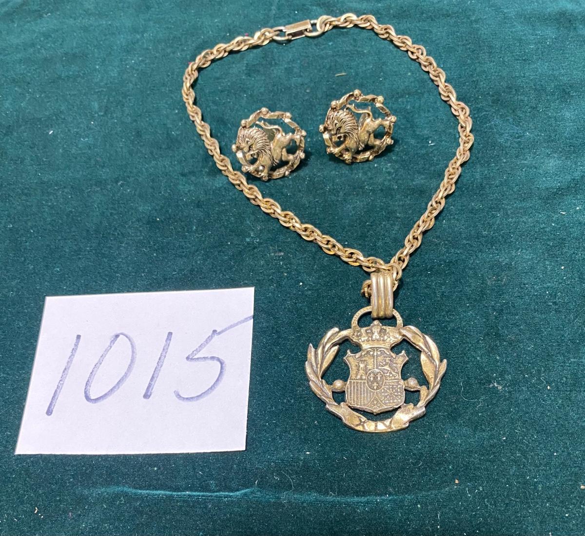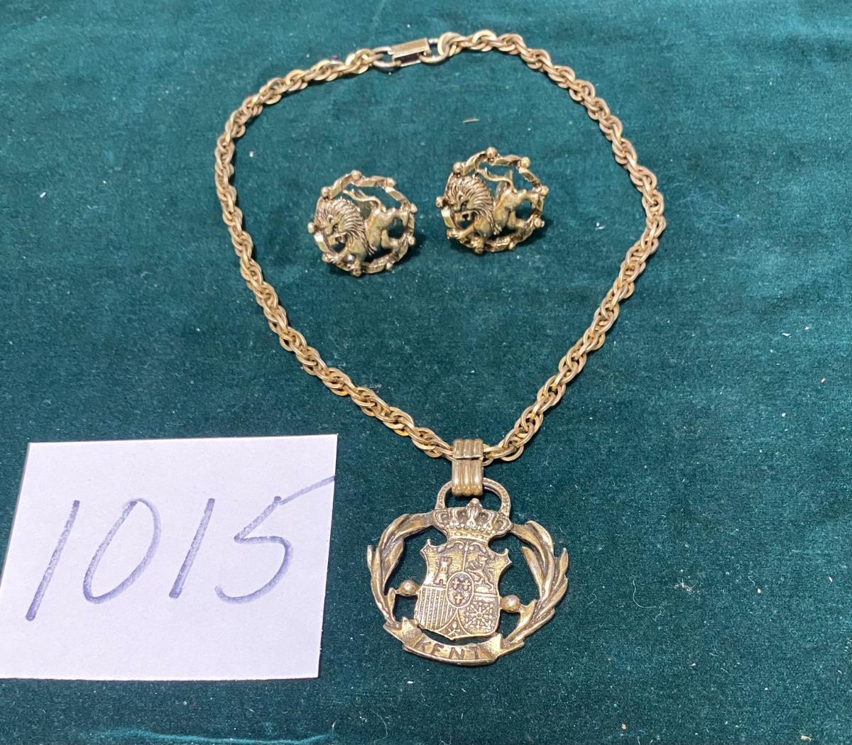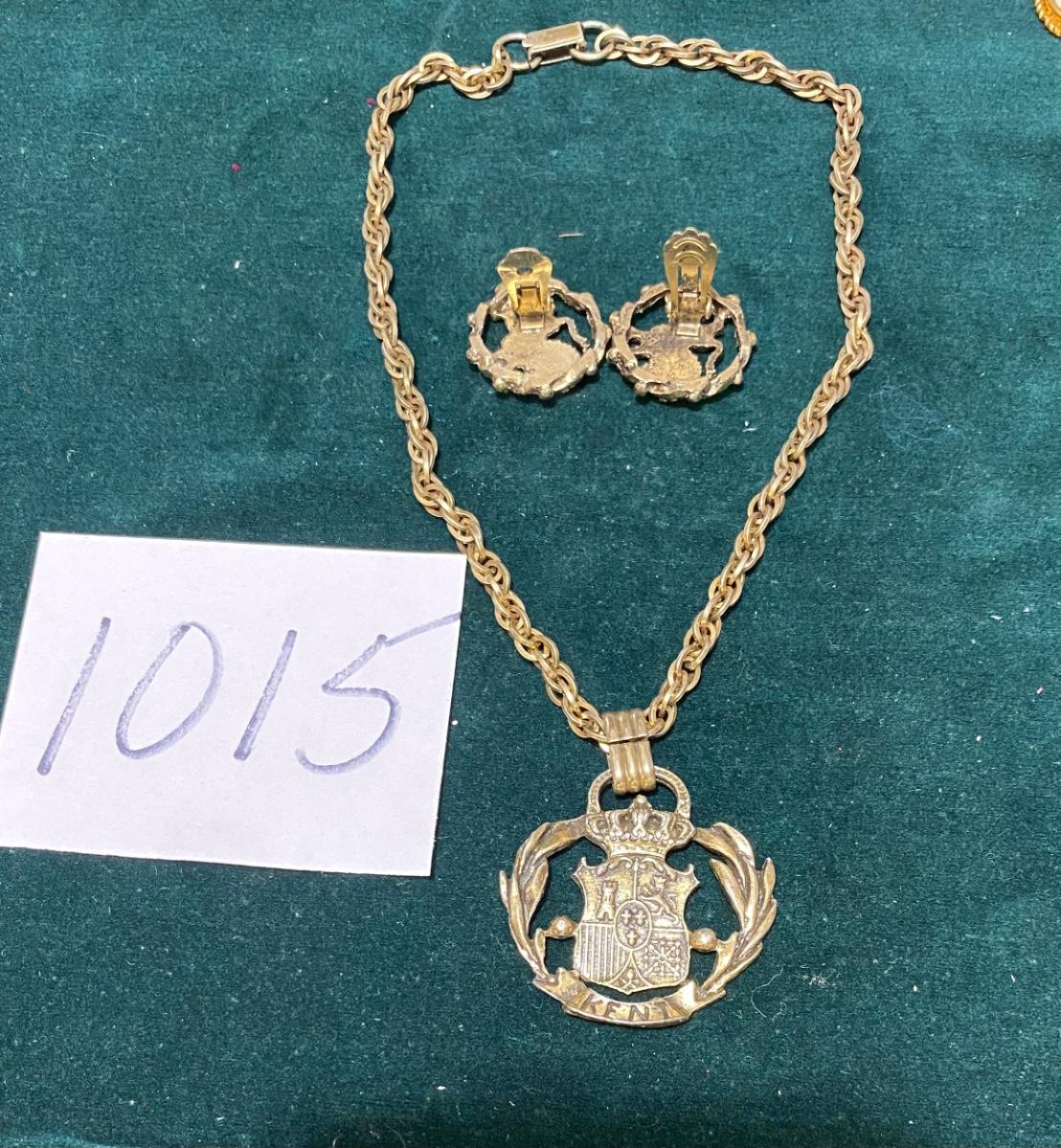 Vintage Kent Coat of Arms Necklace with Clip Earrings