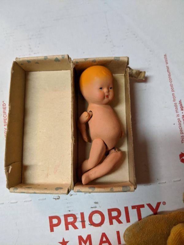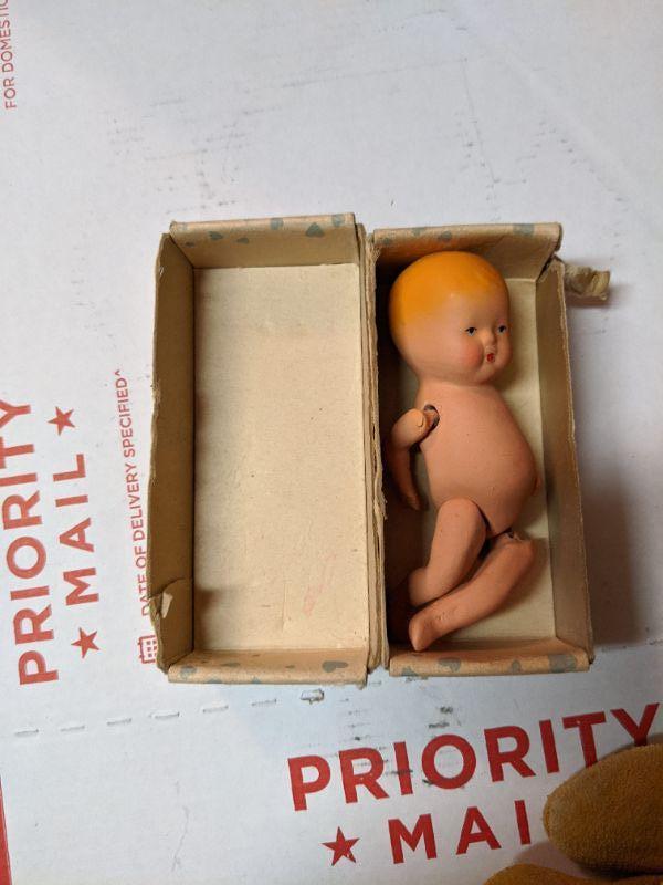 Vintage Kerr and Hinz K&H USA all bisque jointed baby doll in original box