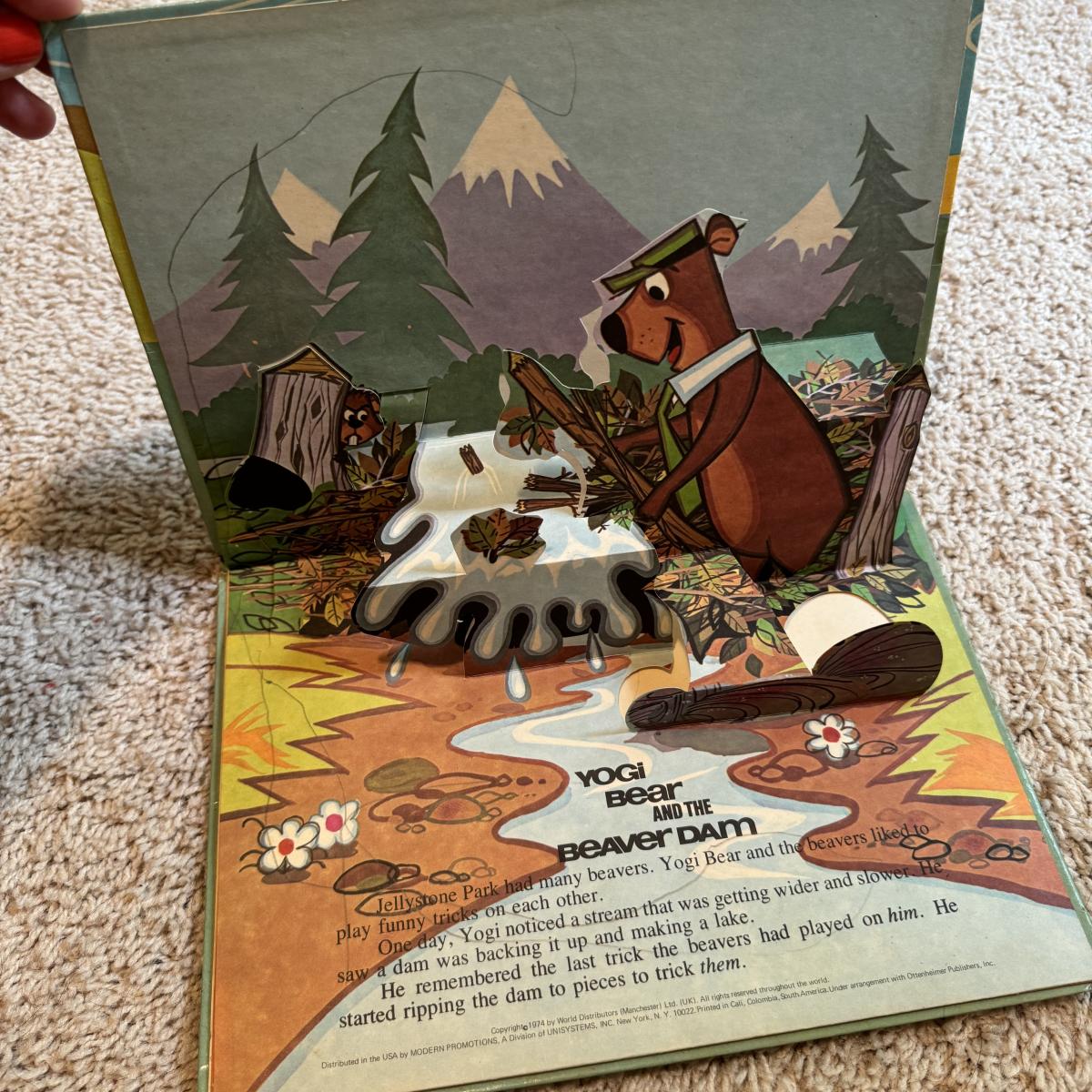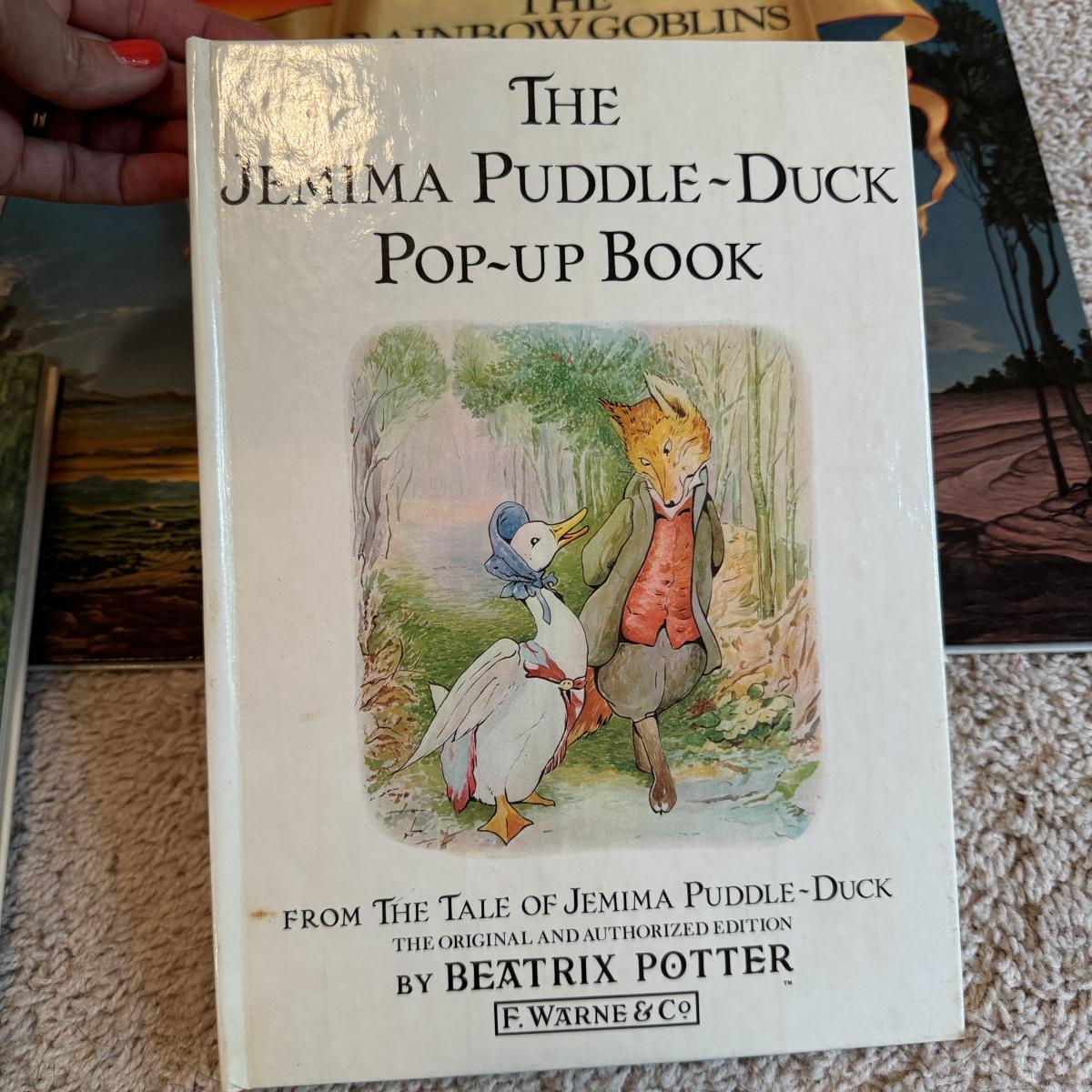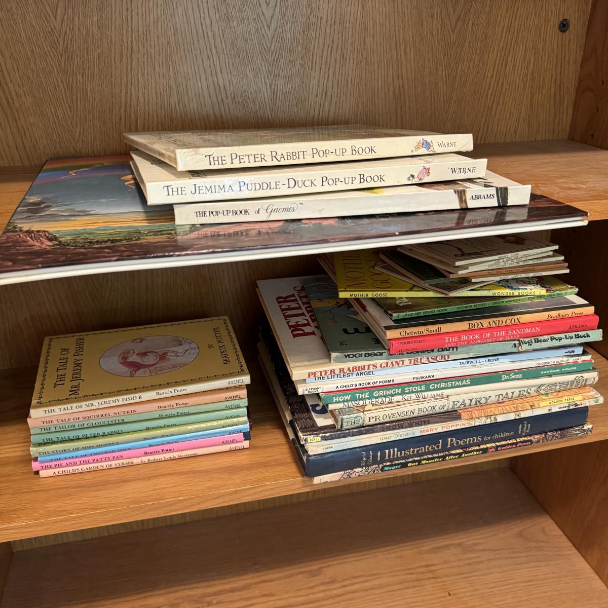 Great collection of vintage kids' books. Includes four pop up books (one still in original plastic), a set of Beatrix Potter books, a large 16.5” by 13.5” The Rainbow Goblins and many other titles. The bindings appear to be in good condition with the exception of the Yogi Bear pop-up book which has a torn spine and also pencil writing in it. Shipping available
