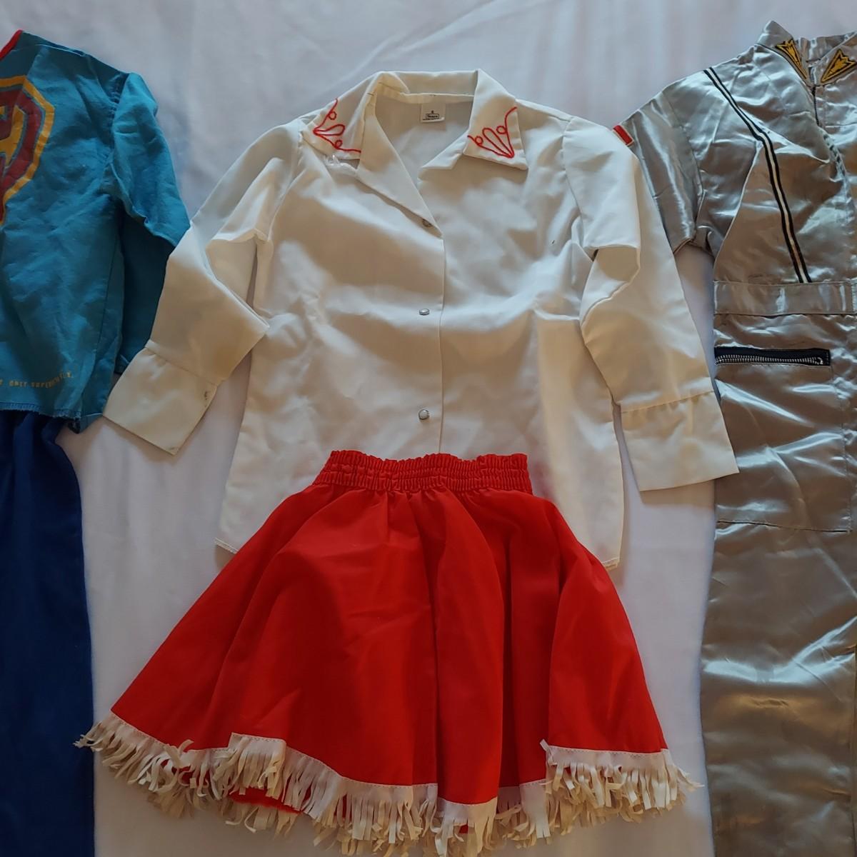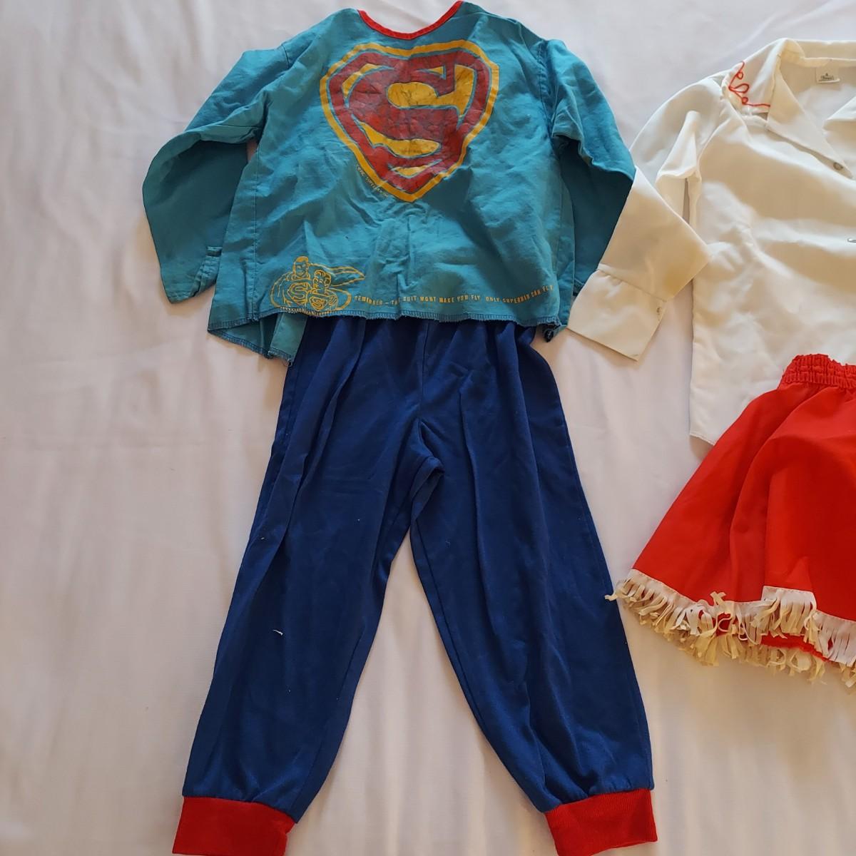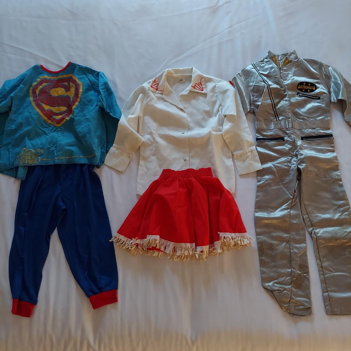 Five vintage kids costumes including an Astronaut, Superman, Cowgirl and more. Sizes average 3-5T. Some overall wear due to age. Shipping available