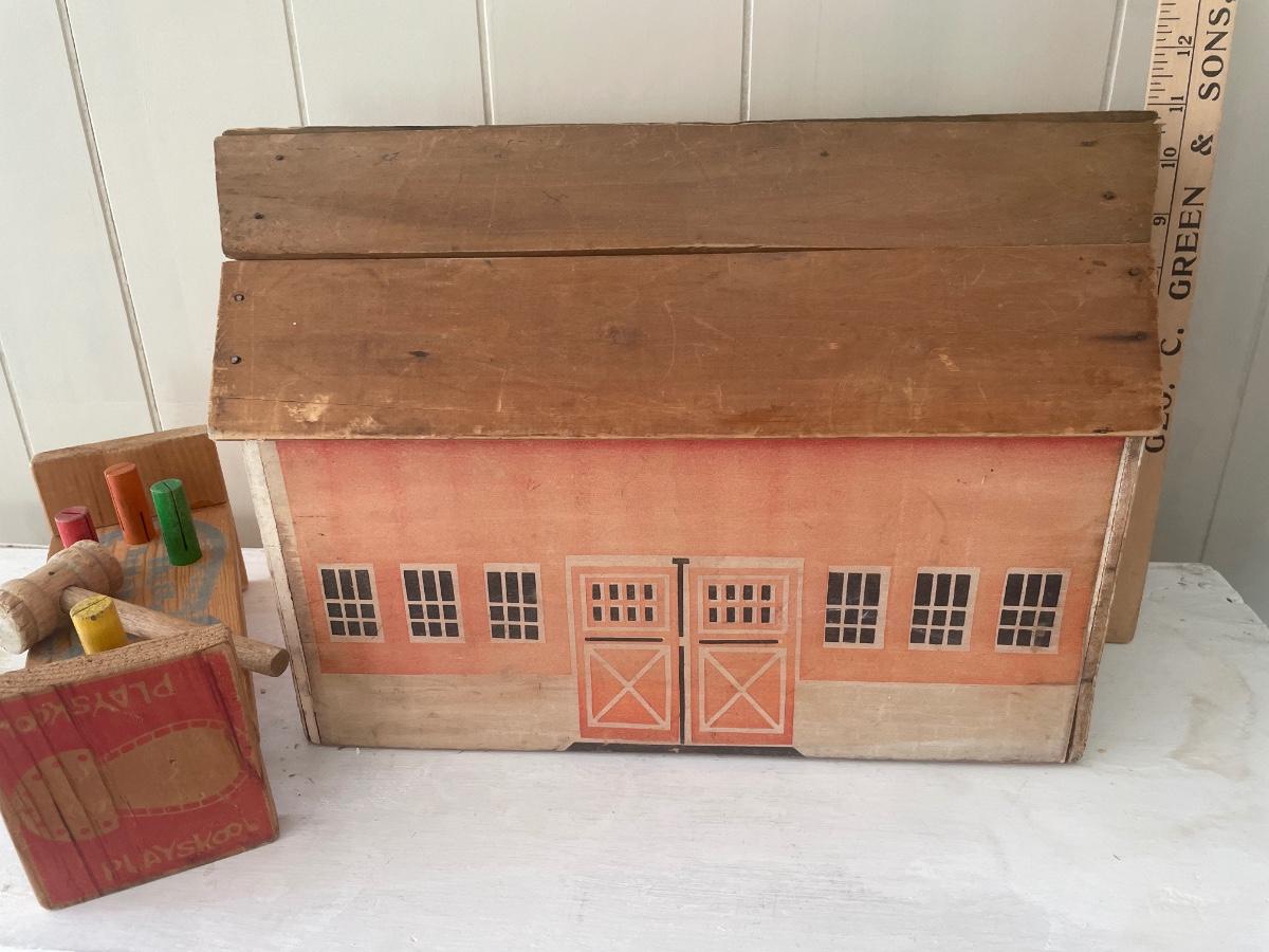 Vintage Kids toy barn and hammer set