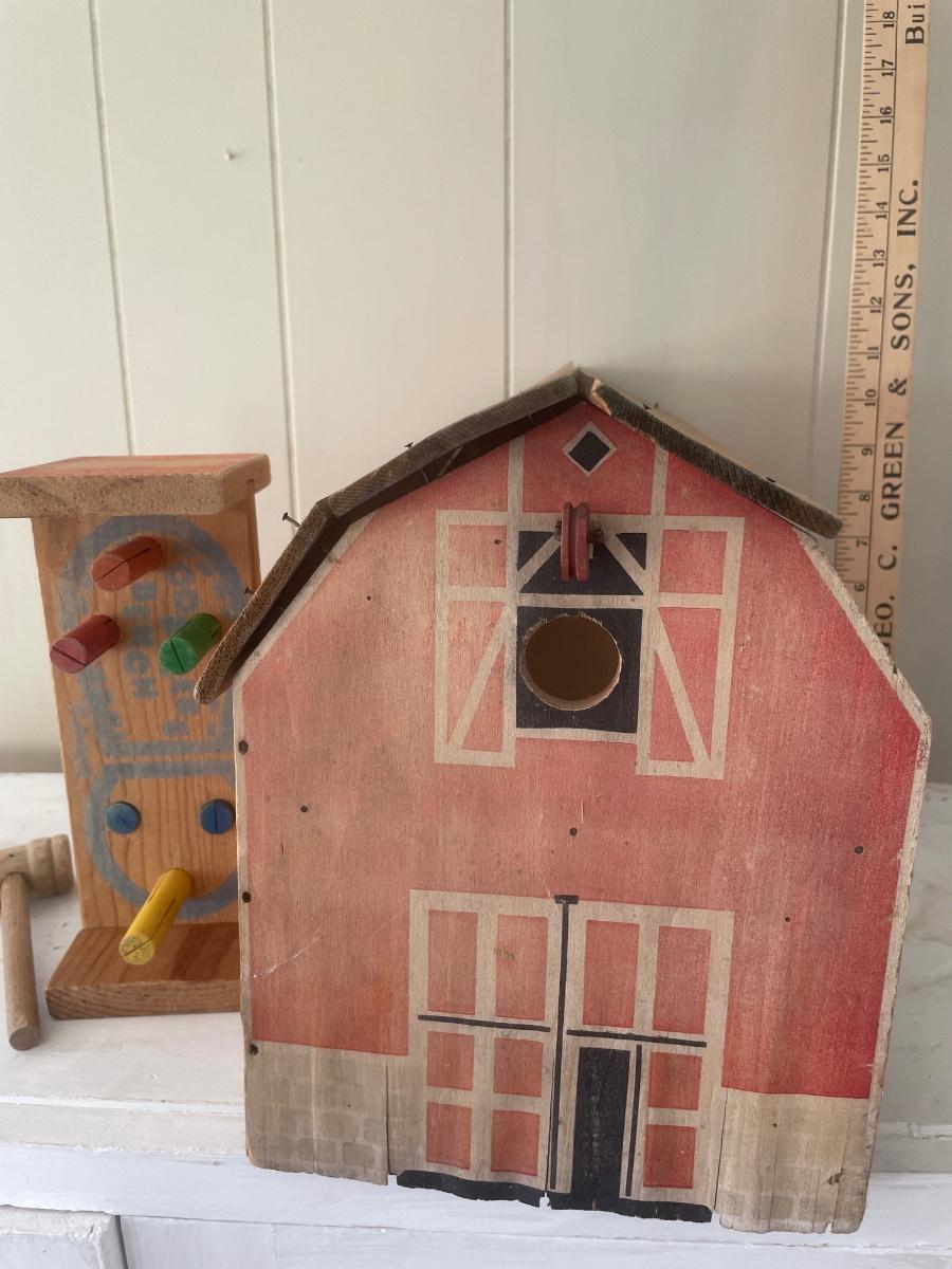 Vintage kids, barn and toy hammer set