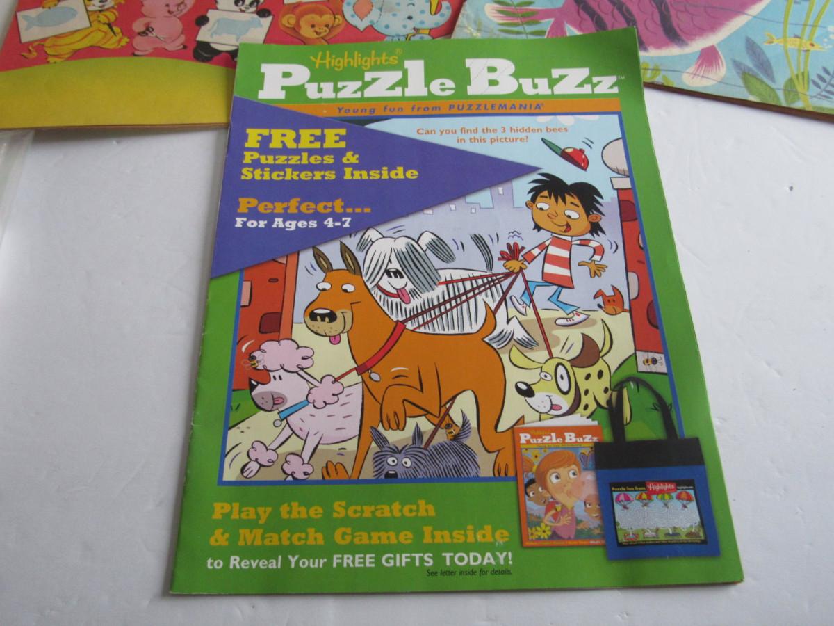 Vintage Kids Tracing Books, Coloring Contest Book, and Highlights Puzzle Buzz