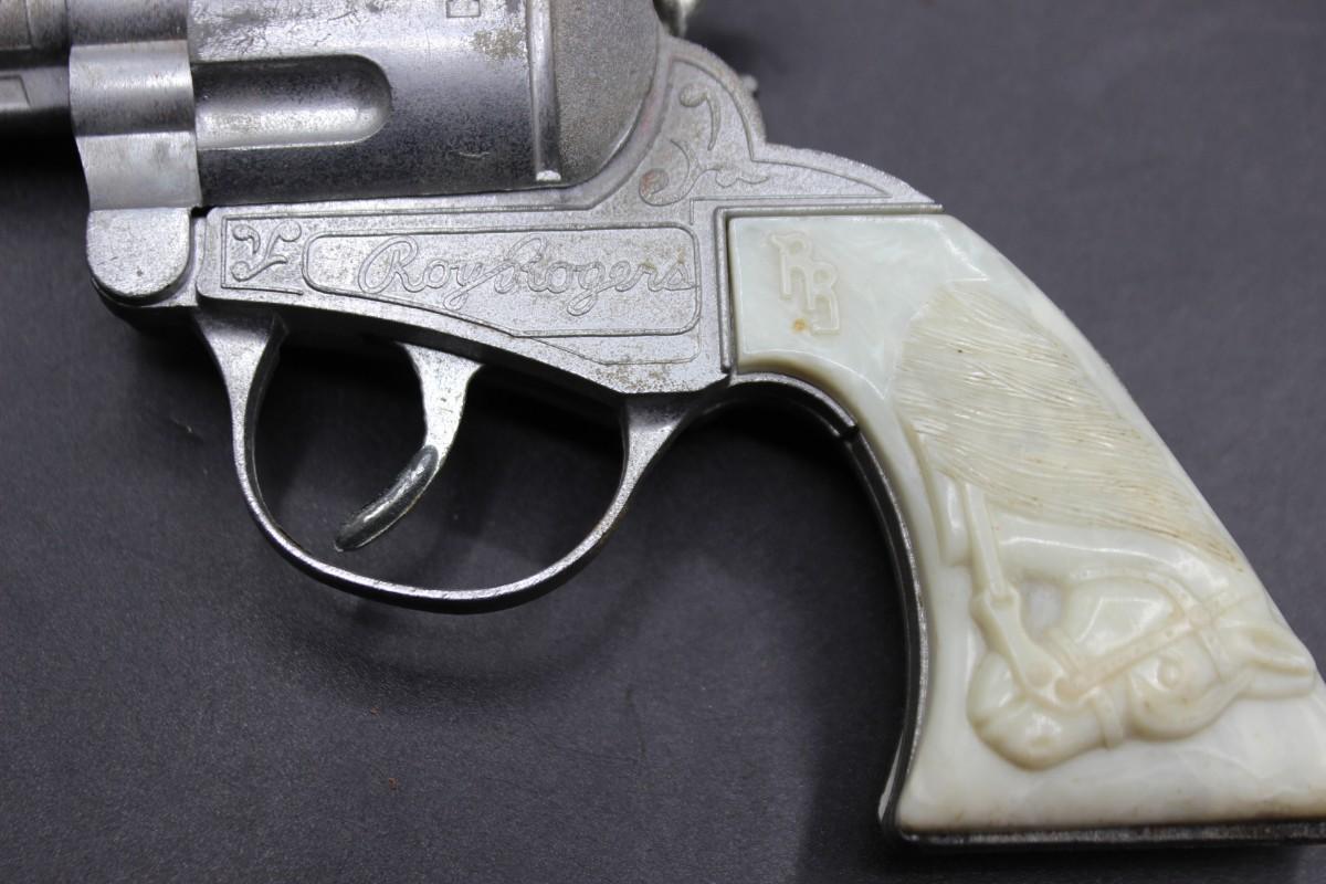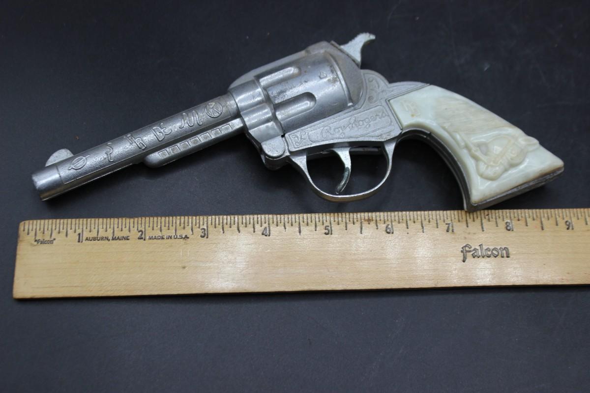 Vintage Kilgore Roy Rogers Diecast Cap Pistol Horsehead Grips with Cowboy Holster