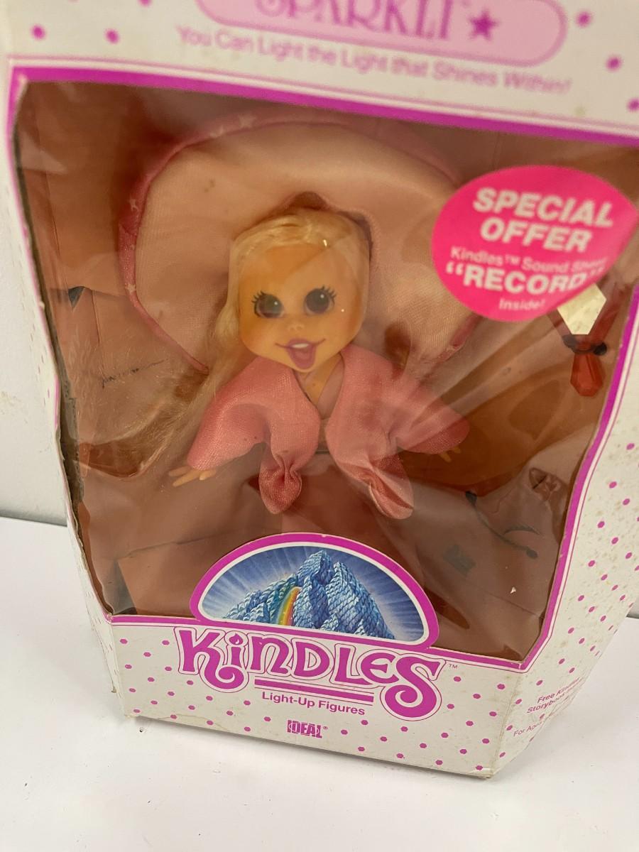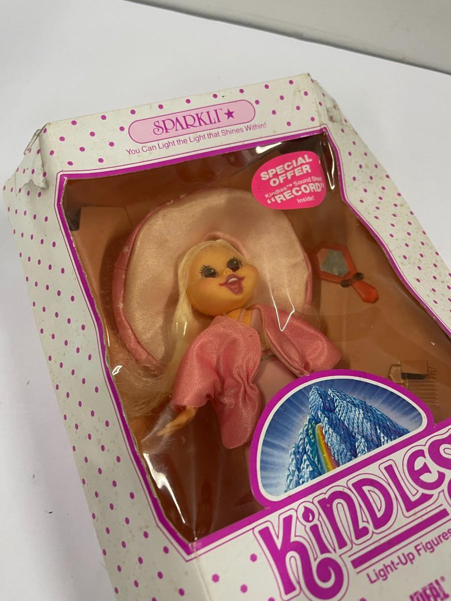 Vintage Kindles light up figures, Sparkli Doll, new in box. Box shows damage.