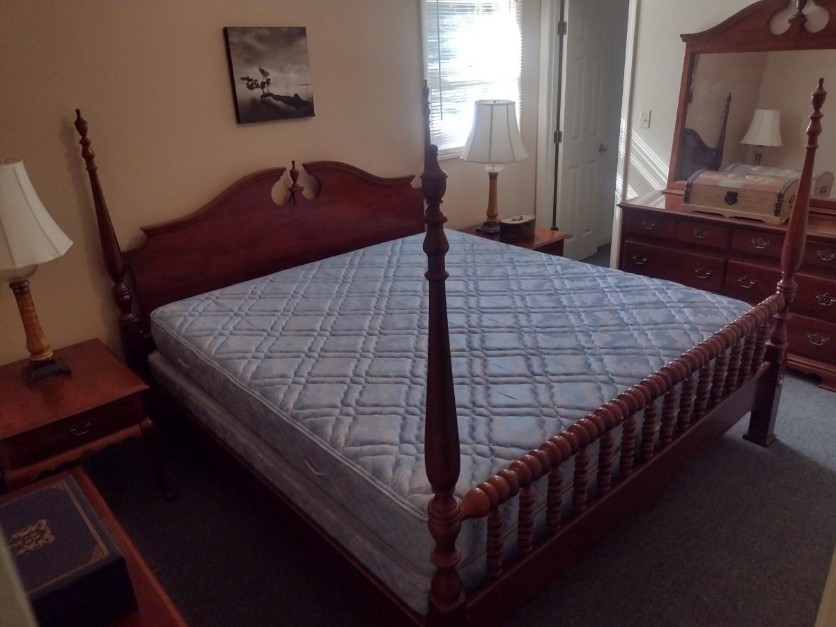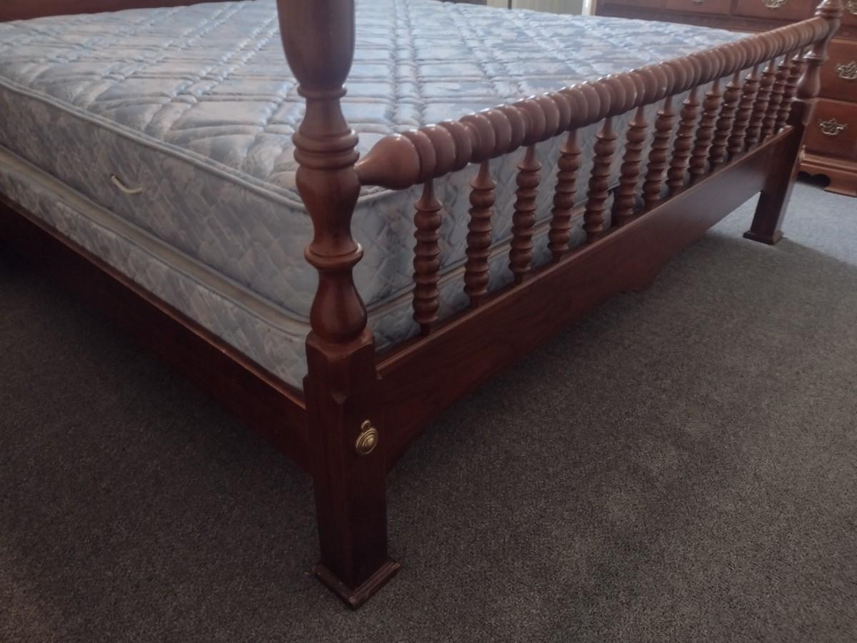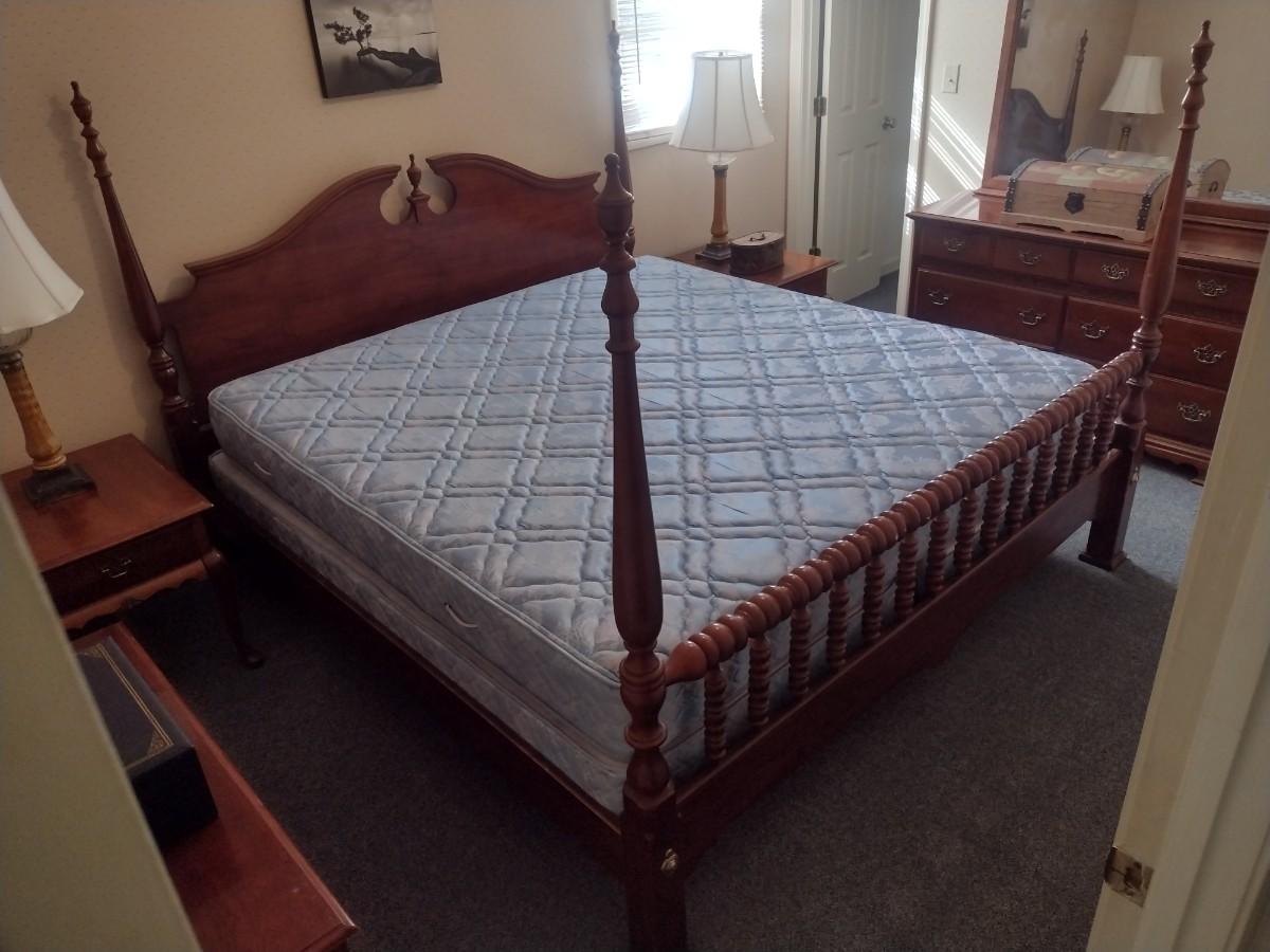 Vintage King Sized Turned Wood Four Post Bed with Mattress Set