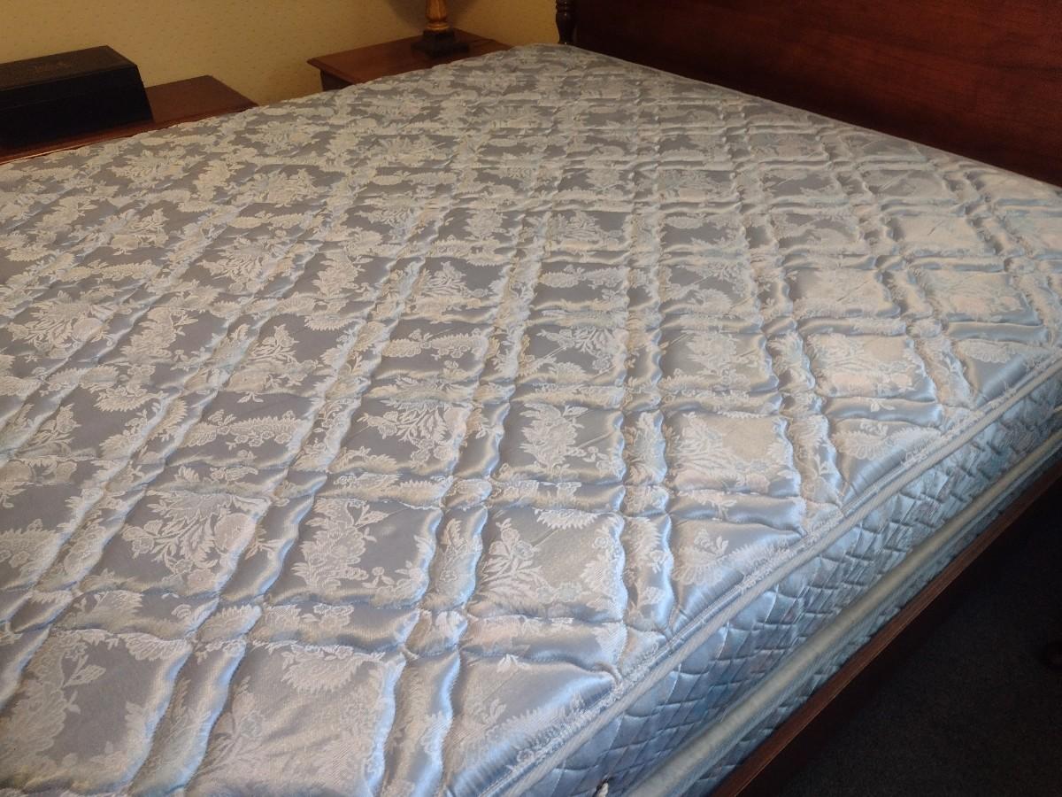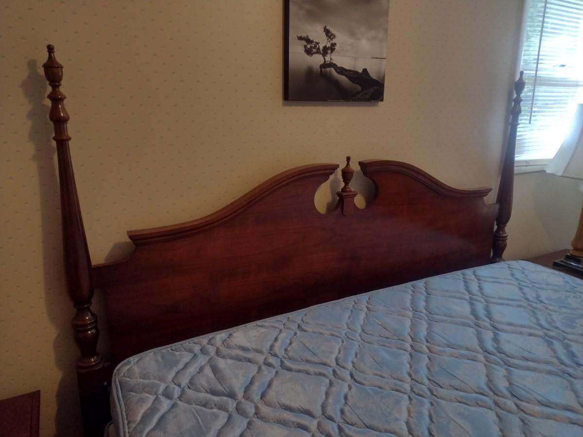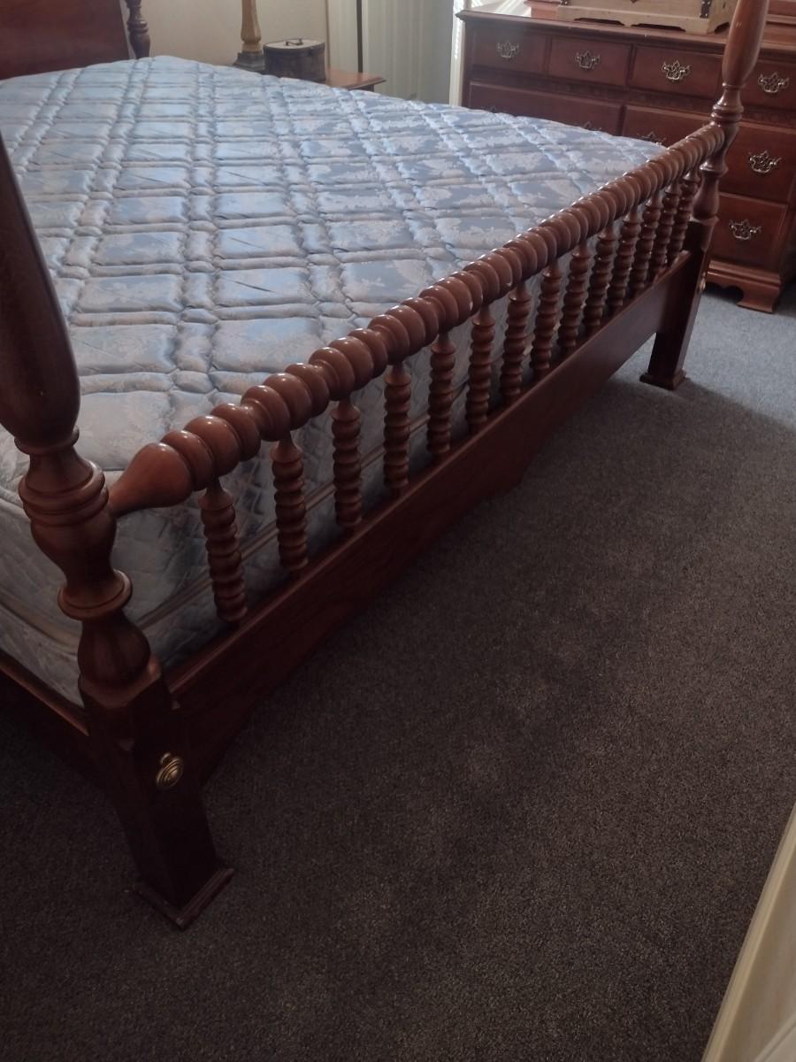 Vintage King Sized Turned Wood Four Post Bed with Mattress Set