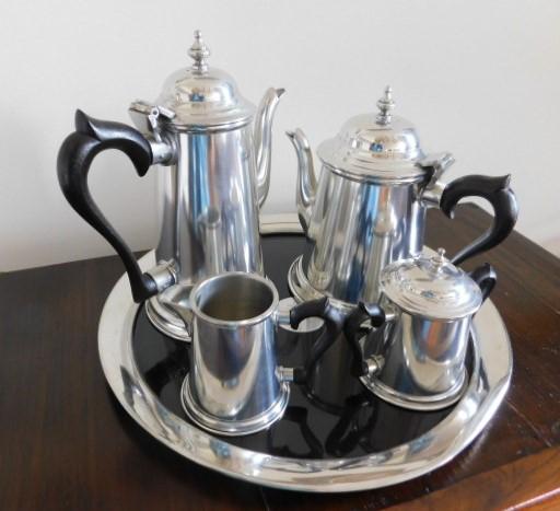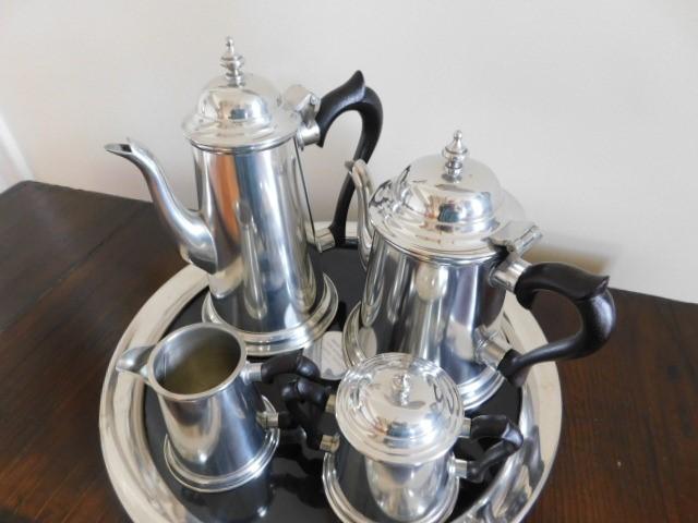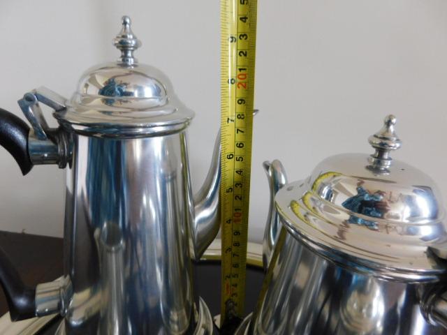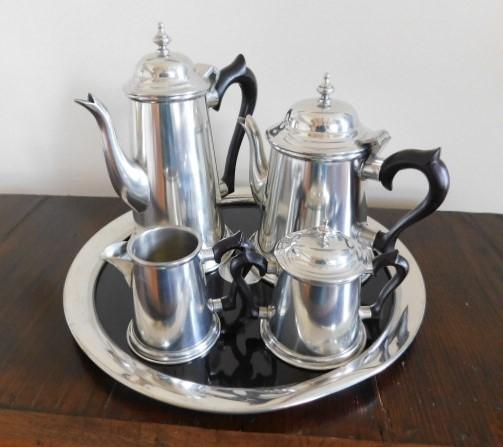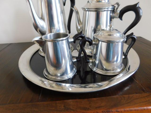 Vintage Kirk Stieff 5pc Pewter Coffee Set tray has been monogrammed