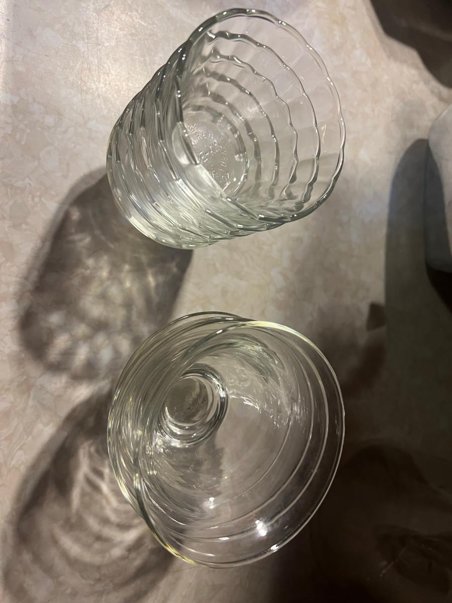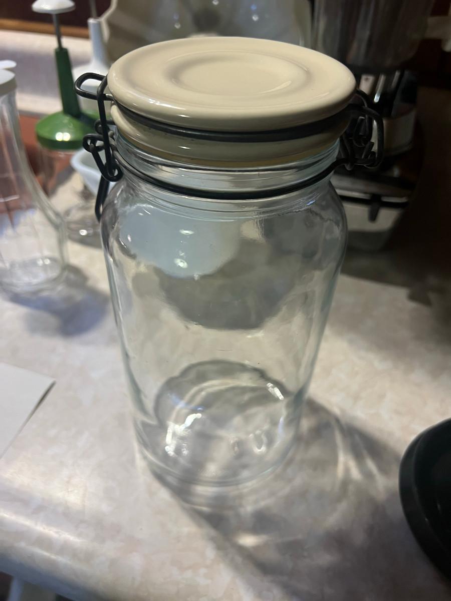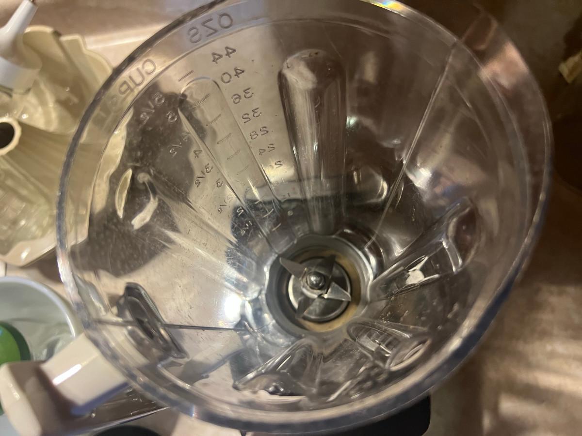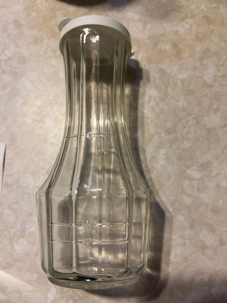 Hamilton Beach Blender model0 Deluxe Liqui-blender 7 speed, bundt pan, nut chopper, dressing bottle Good Seasons, 4 glass bowls 3" x 4", 6 glass bowls 5 oz Fire King 3.5" x 2 1/4", white mix bowl 4.5" x 7.5" and 1 vintage jar with lid 9 3/4" x 4.5"