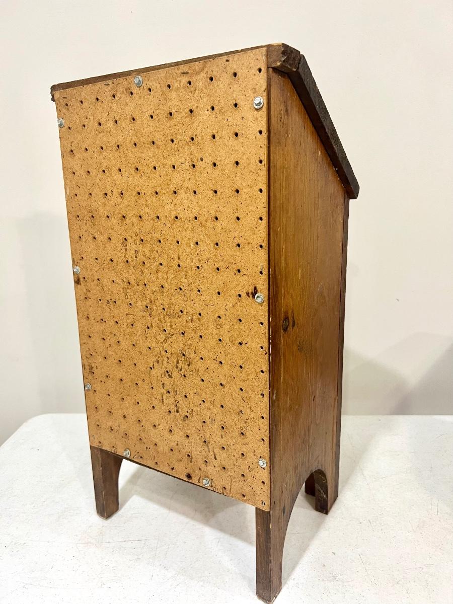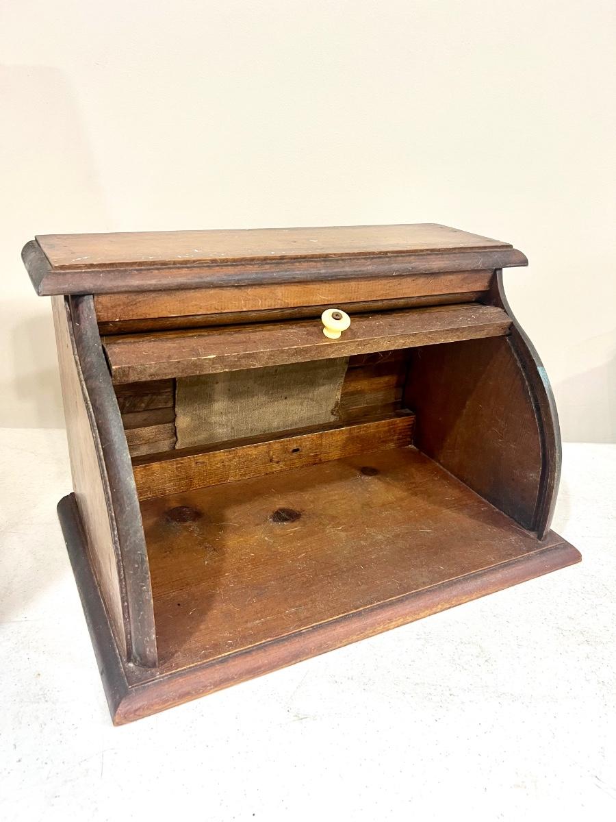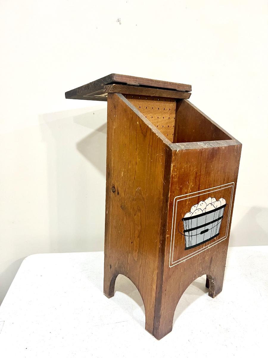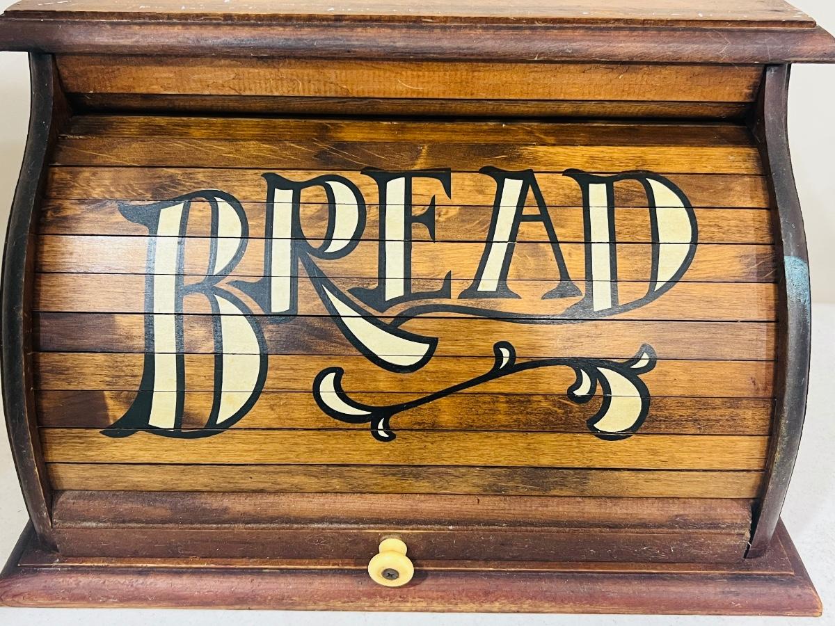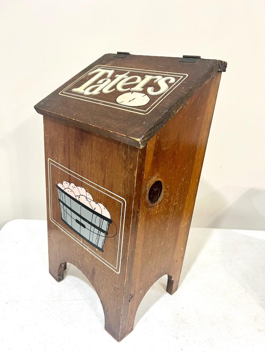 Vintage wood bread box works as it should measures 11 inches tall, 18 inches wide and 11 inches deep. Tater bin measures 23 inches tall, 12 inches wide and 9 inches deep. These do have knicks, scratches and signs of use, but are fully functional.