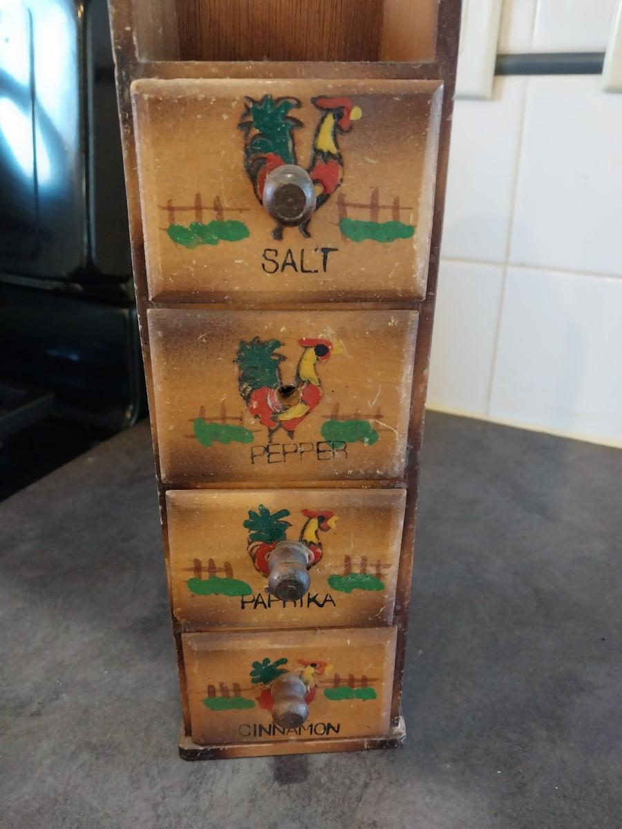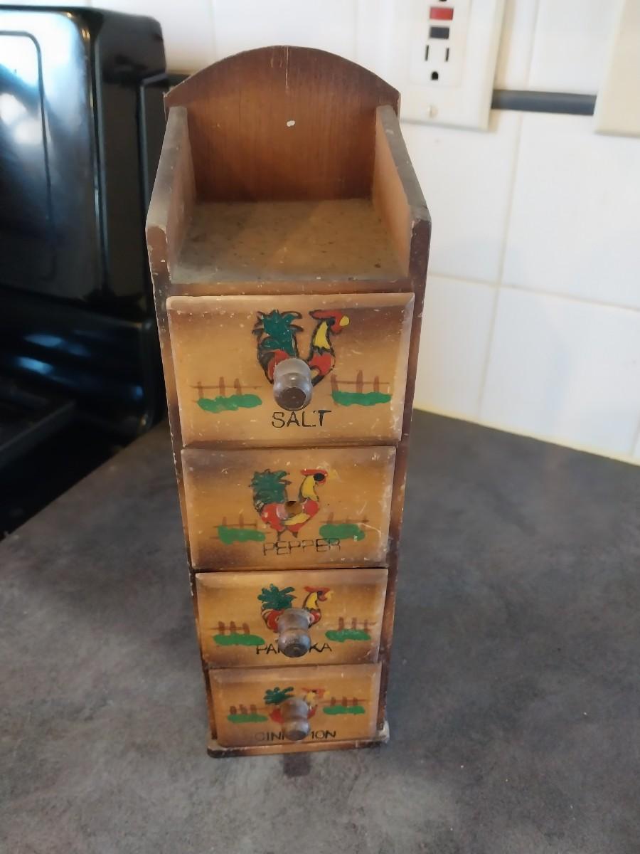 4 DRAWER ROOSTER KEEPER, IT IS MISSING 1 PULL KNOB