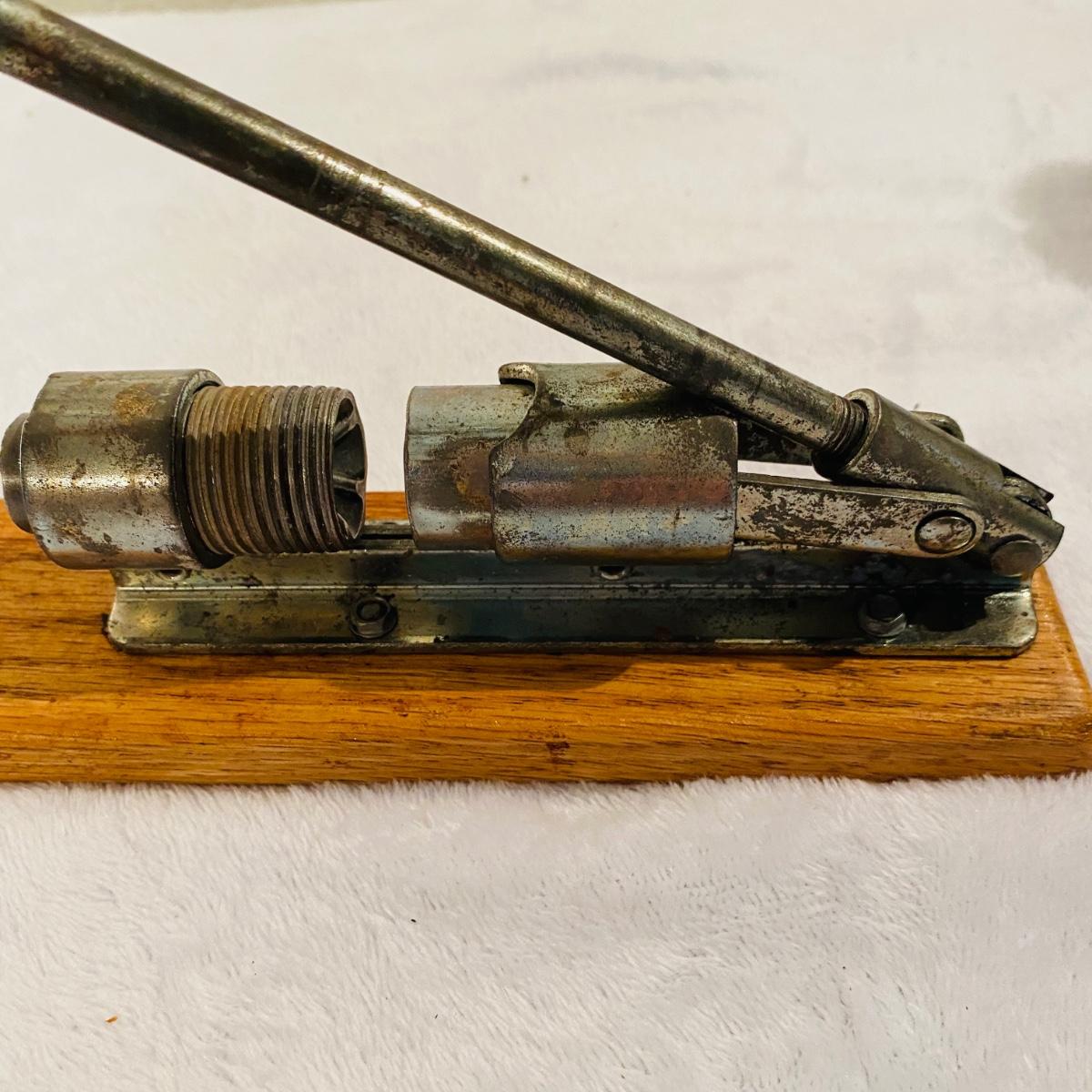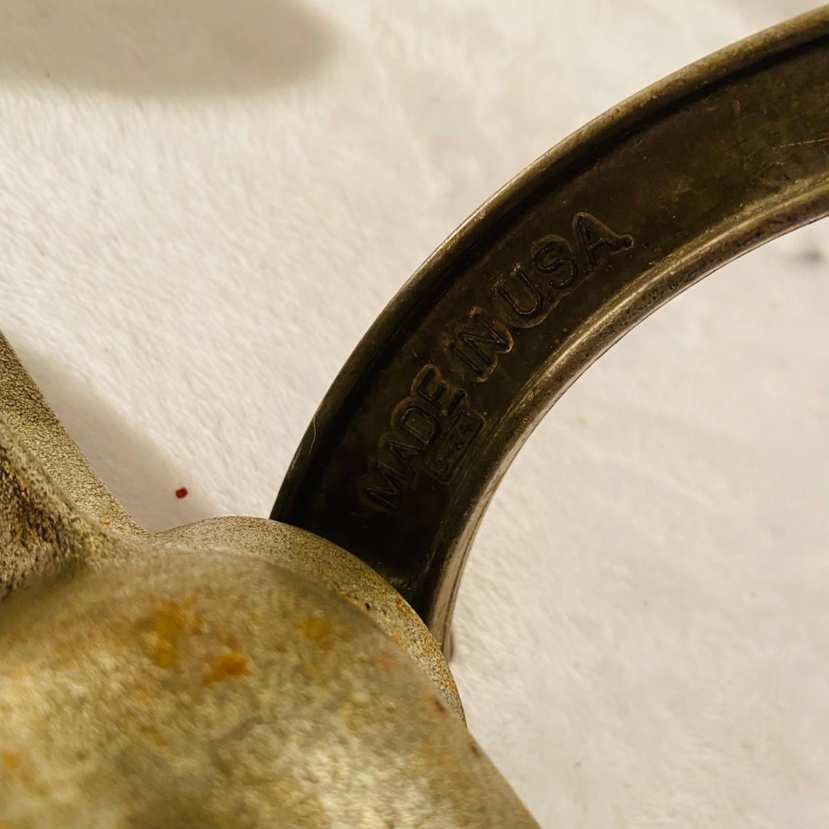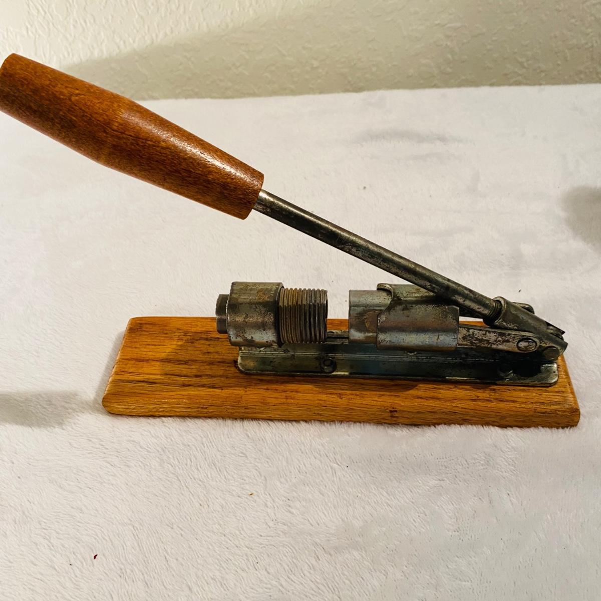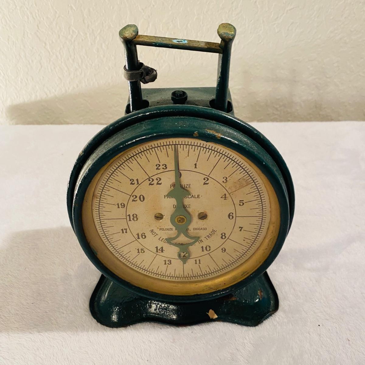 Includes wood and metal nutcracker, GE iron, Pelouze family scale (missing top), and Universal meat grinder made in USA.