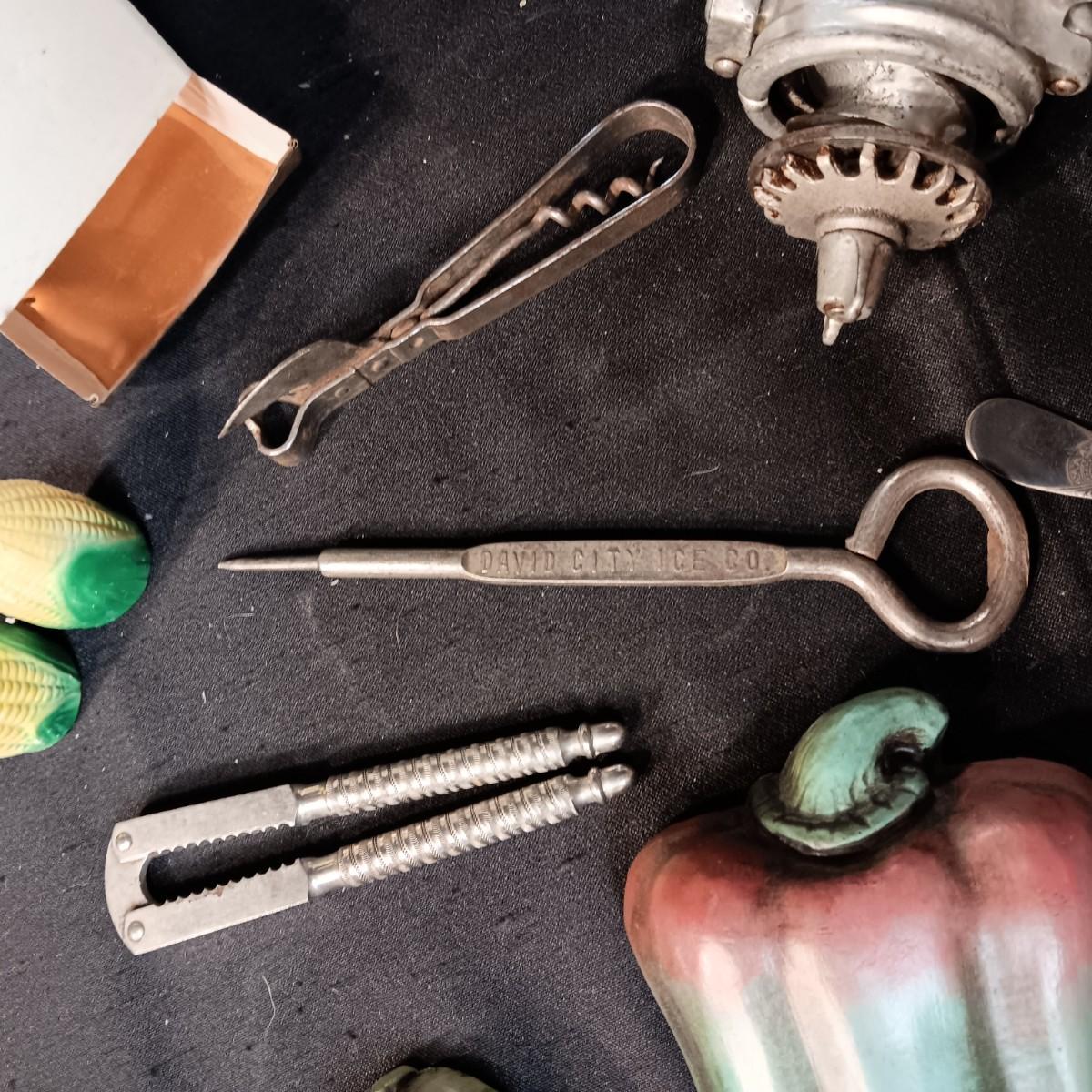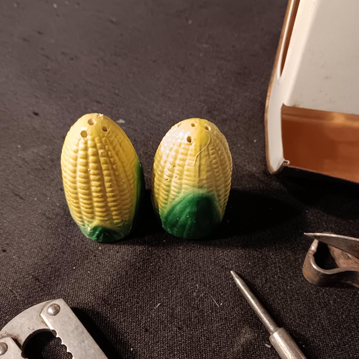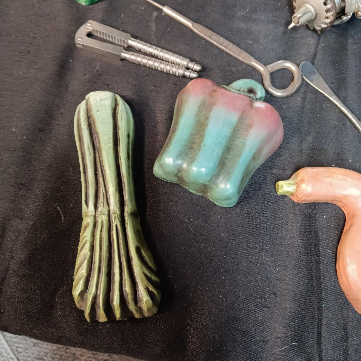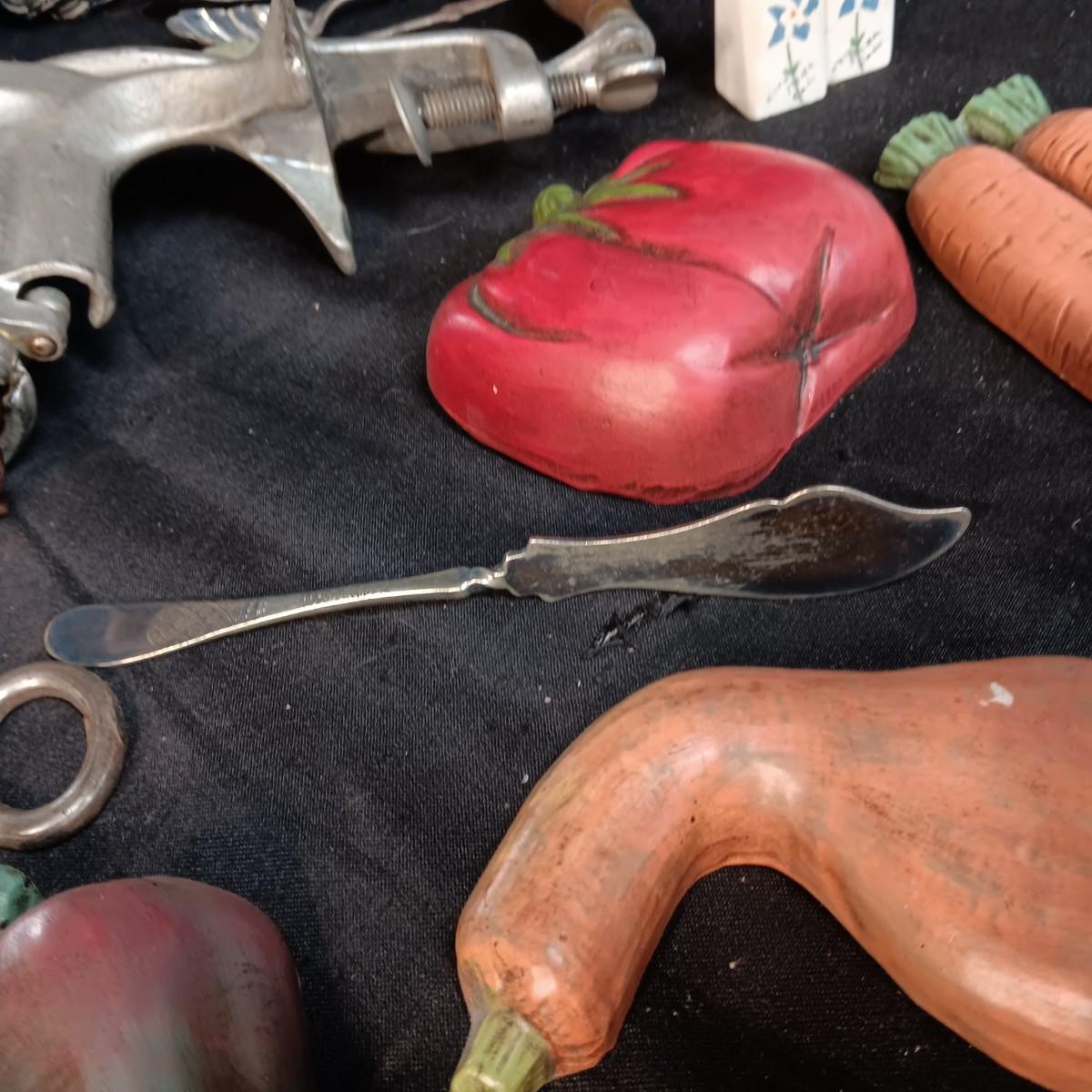 VINTAGE KITCHEN ITEMS INCLUDING CHALKWARE WALL HUNG VEGETABLES