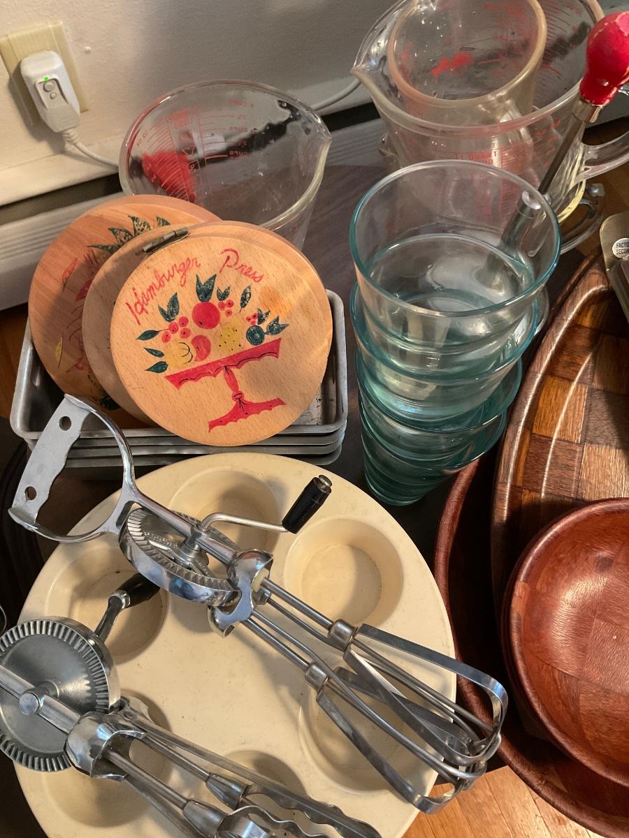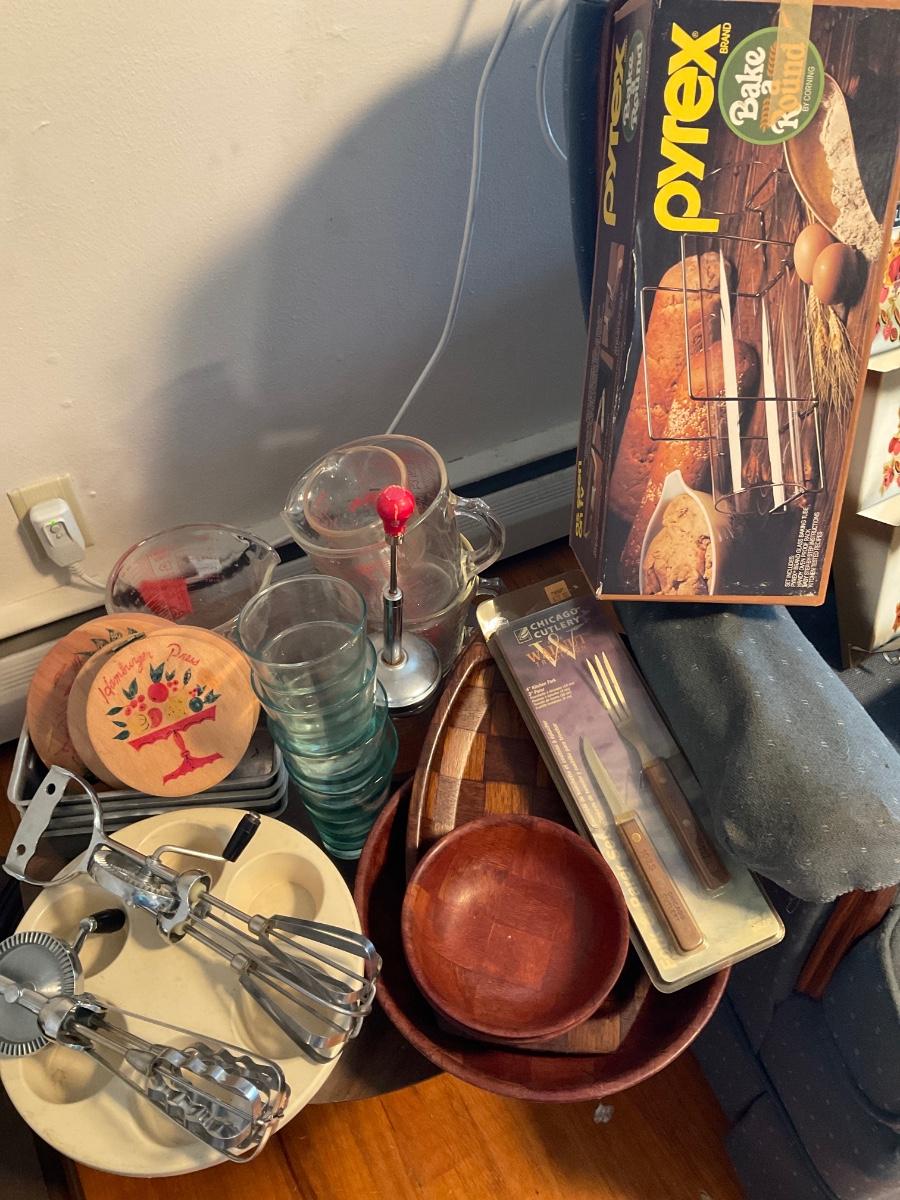 Vintage kitchen items & small round table