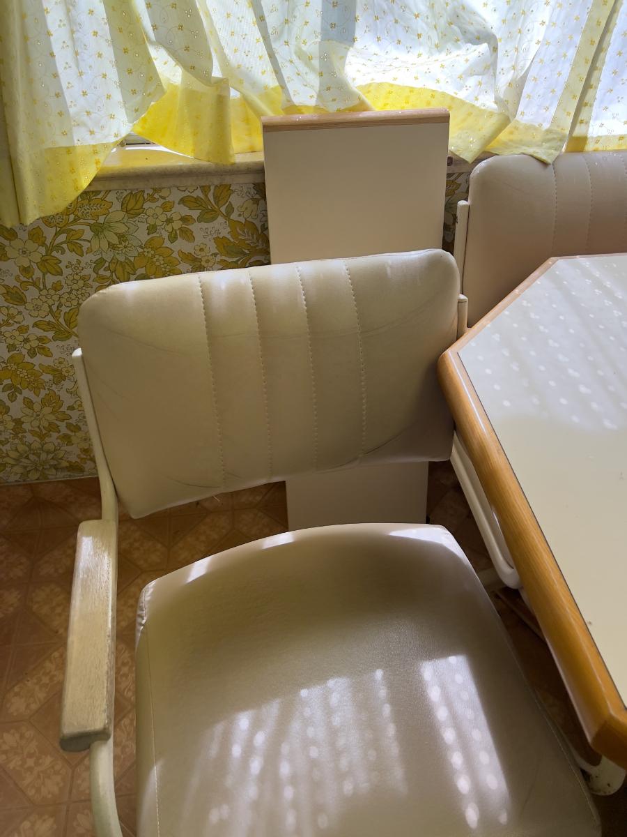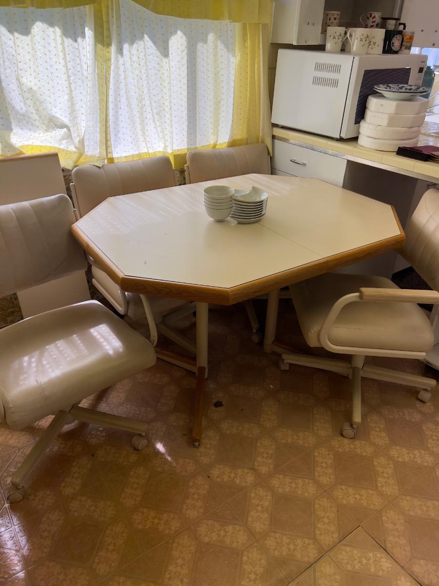 Vintage Kitchen Table & Rolling Chairs, Ice Oak and Naugahyde